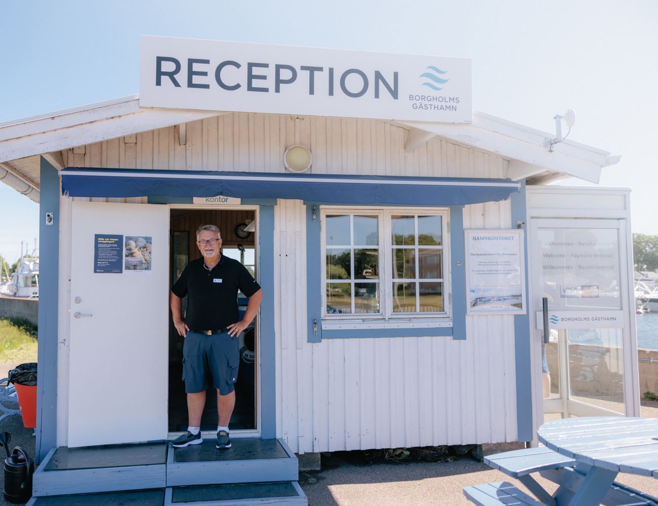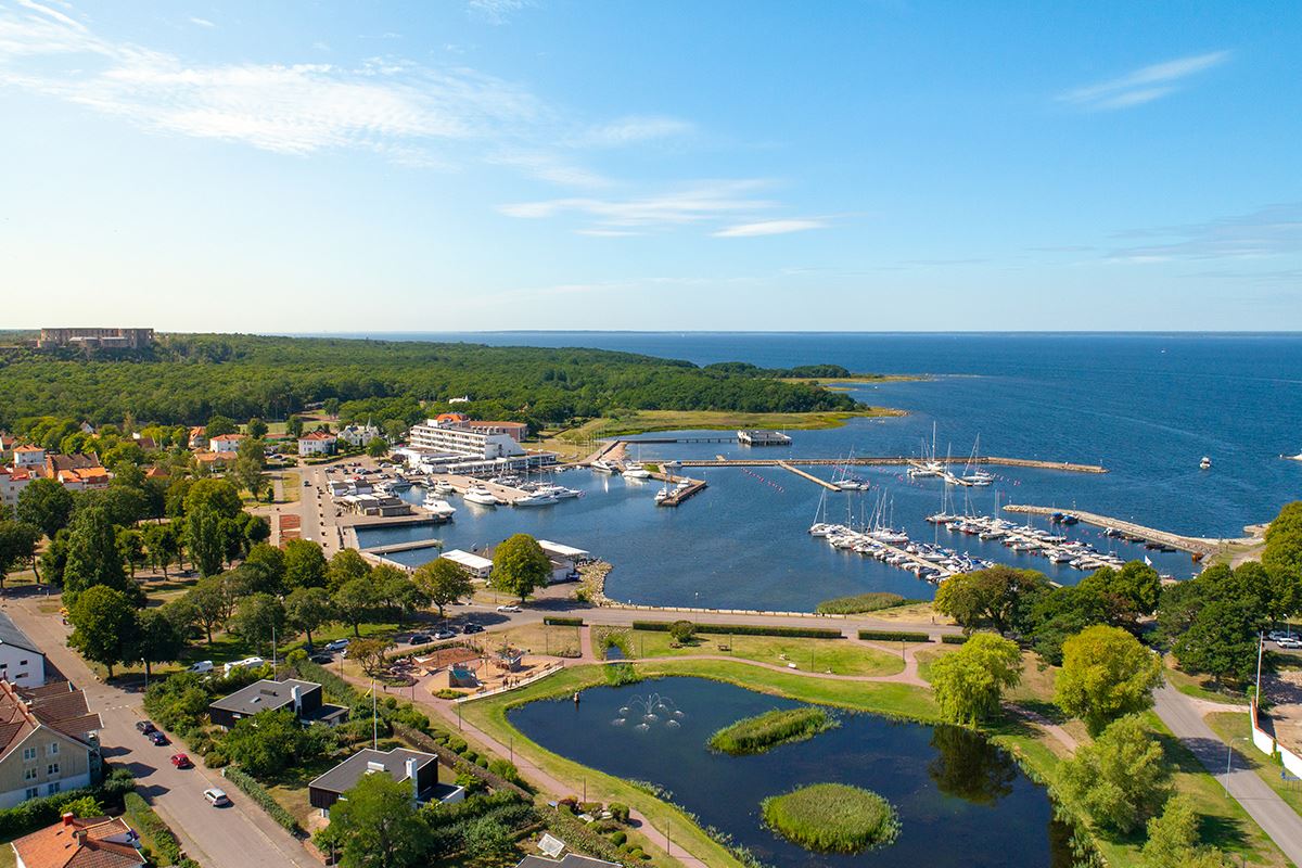 Hamnkontoret är bemannat varje dag under högsäsong från morgon till kväll. Under lågsäsong hänvisas alla båtgäster till receptionen på Strand Hotell. Hamnservice med duschar, toaletter, och tvättstuga är öppet dygnet runt under högsäsongen. Hamnen är Miljöcertifierad med Blå Flagg. I gästhamnen finns även en sjömack som säljer både bensin och diesel.