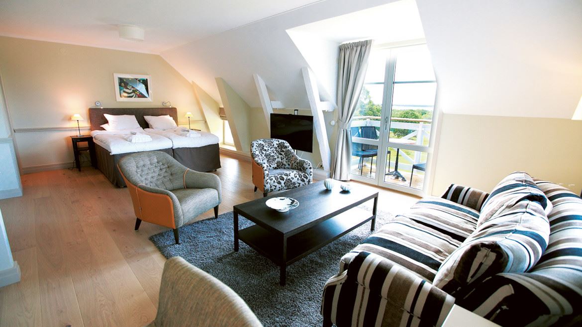 Våra 4 Sviter som stod klara sommaren 2012 erbjuder ett fantastiskt boende i Mangårdsbyggnaden från slutet av 1800-talet som alla har en personlig och smakfull inredning och inte minst en fantastisk utsikt över Kalmarsund.