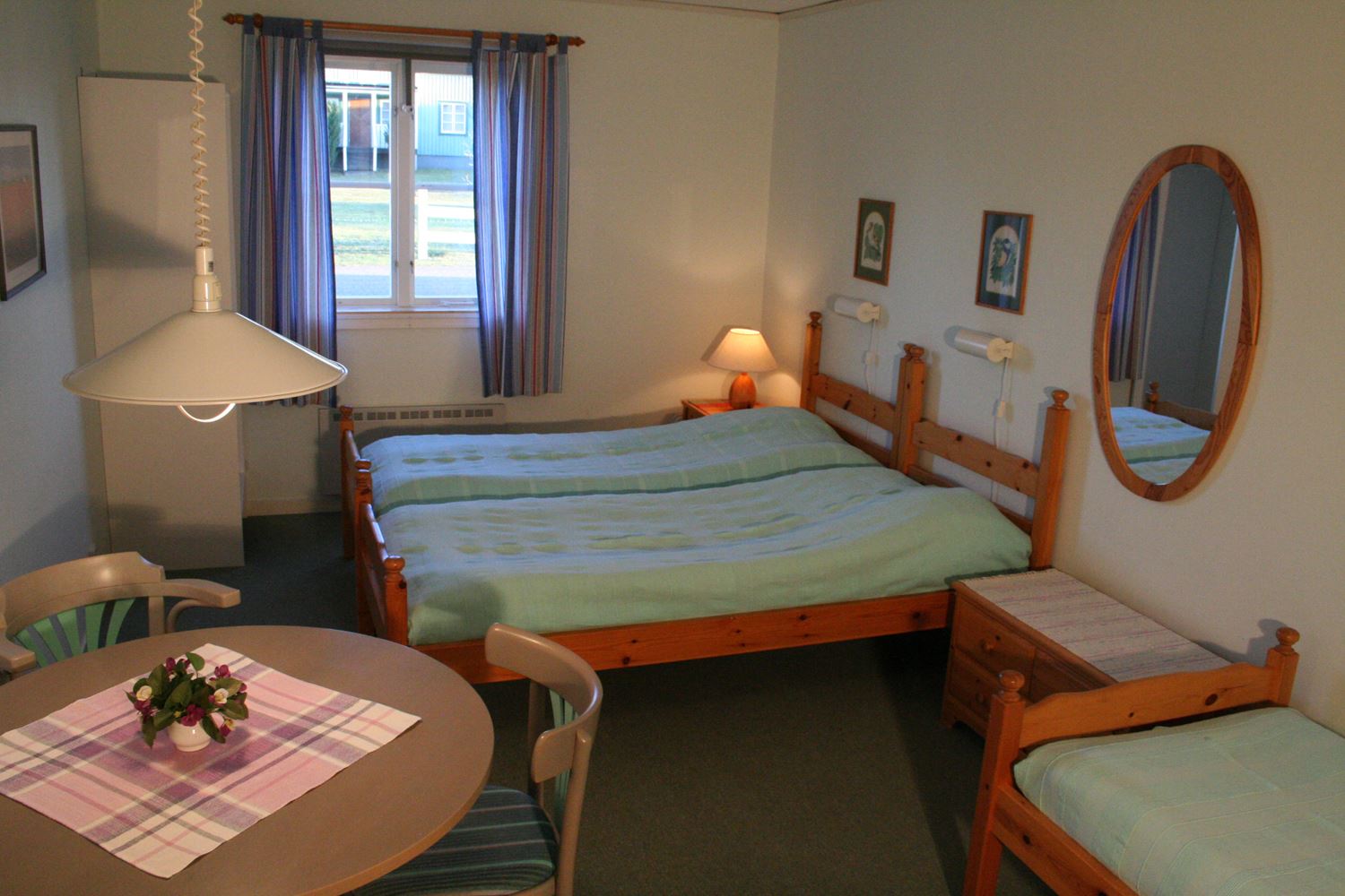 Many showers and WCs. Some rooms with own WC. Lounge with TV. Cooking facilities available. Linen and breakfast not included.. Cleaning included . Barbeque chalet. One extra child 0-4 years cost 50 SEK / night in parents' bed, no extra bed.