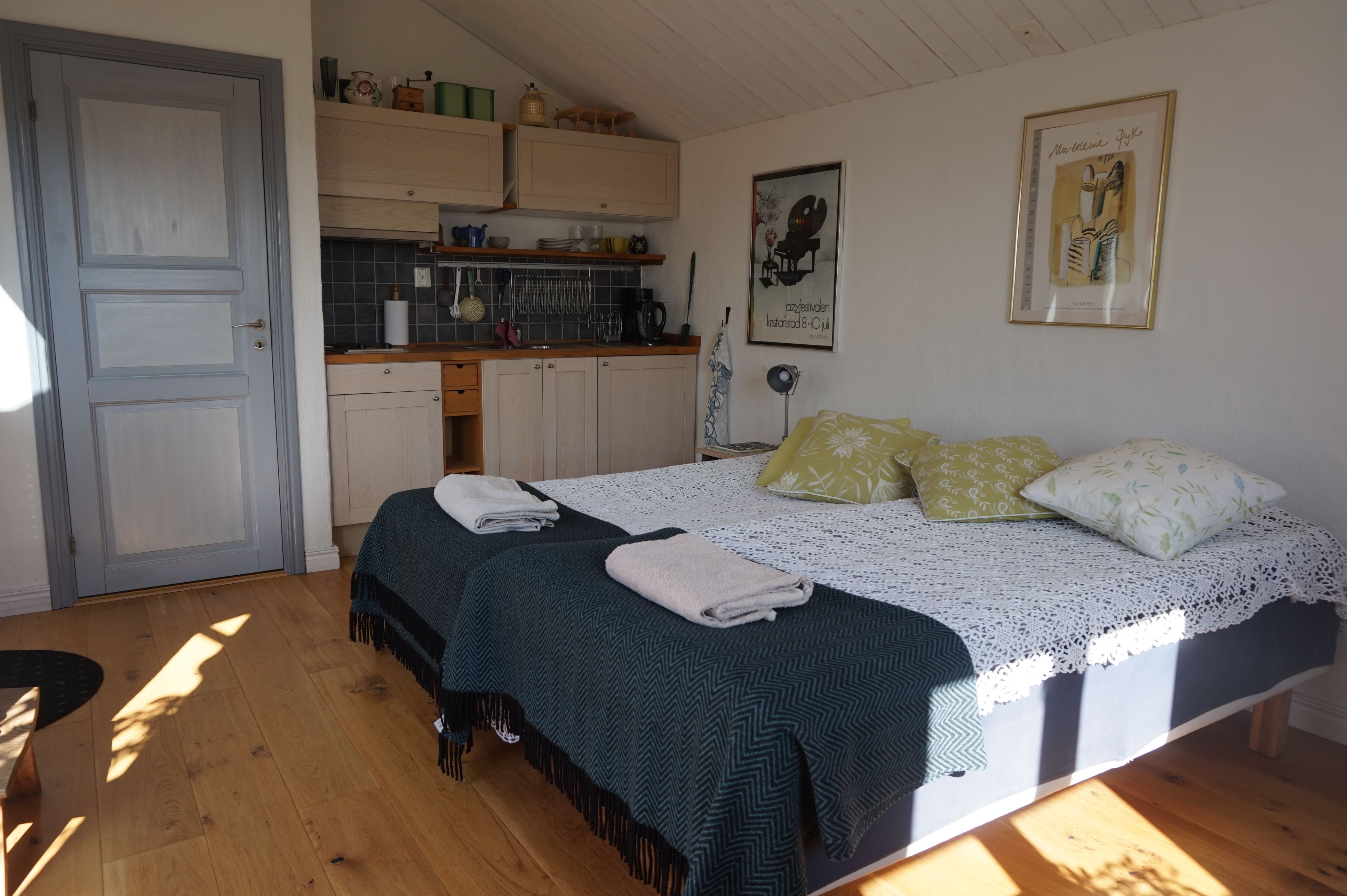 Kallevalla Bed and Breakfast is located in Kastlösa on southwest Öland, Sweden. The double room (twin bed) has a private entrance, a bathroom and a kitchen (pantry) and WiFi. Pets are allowed