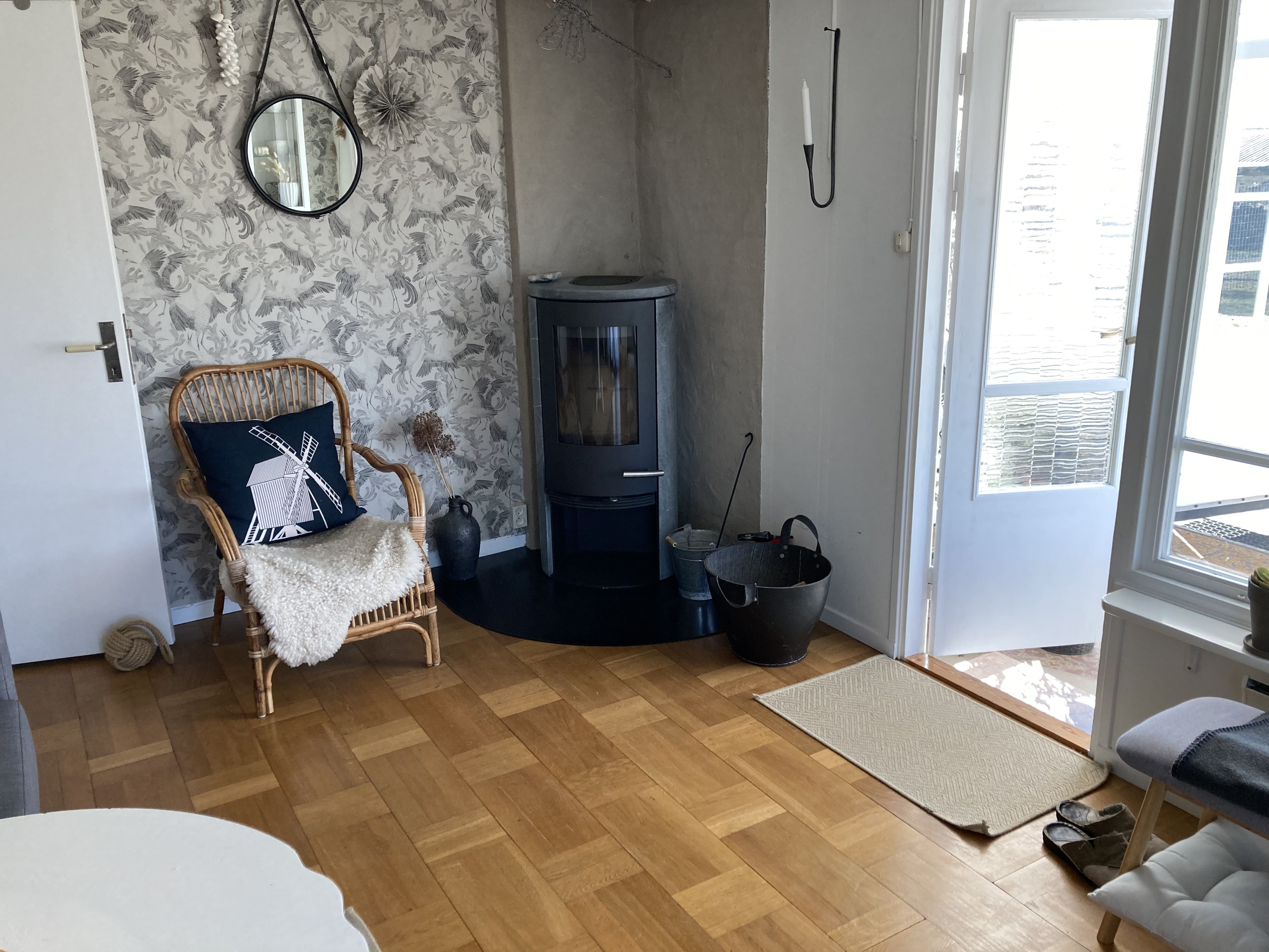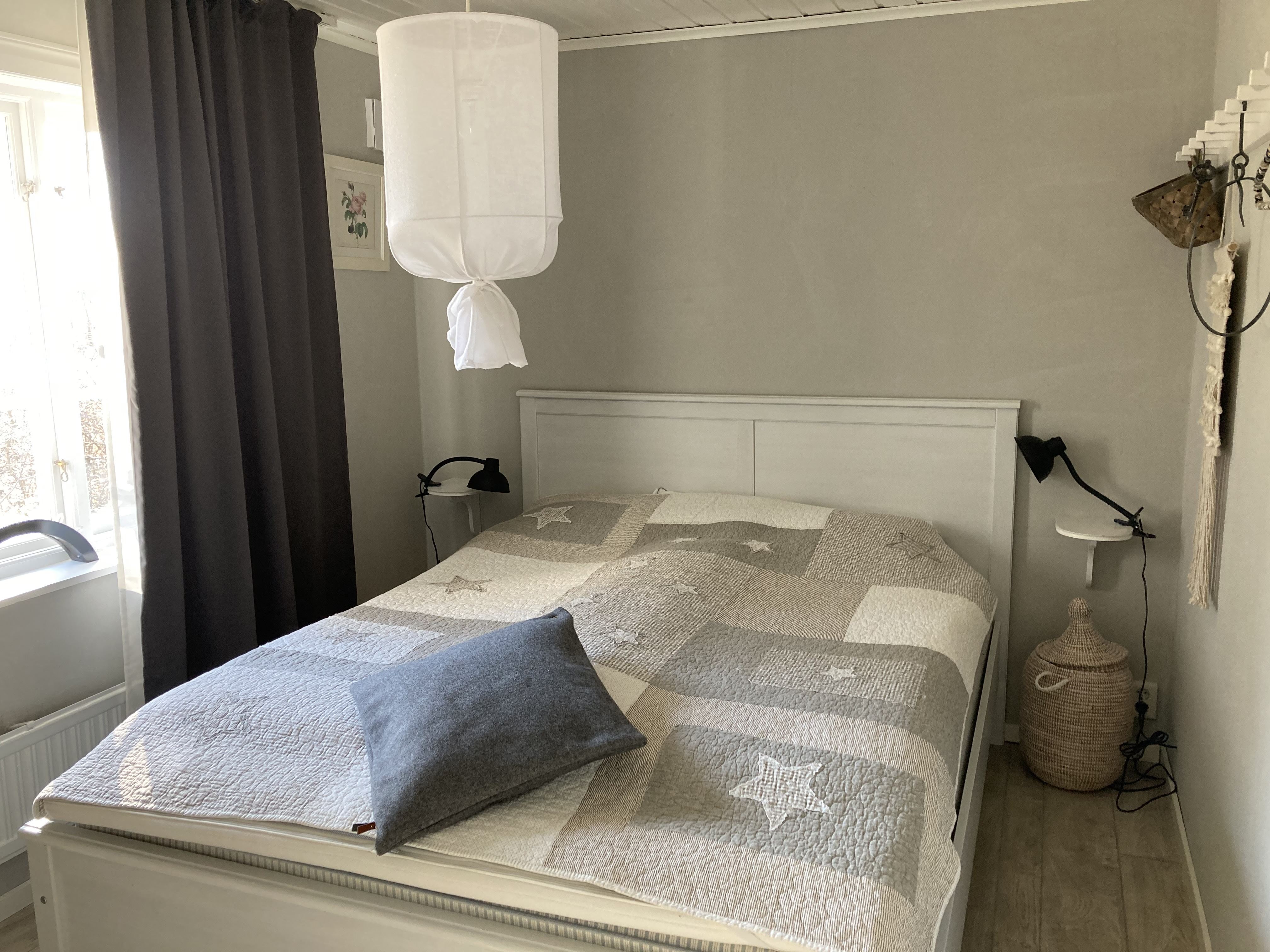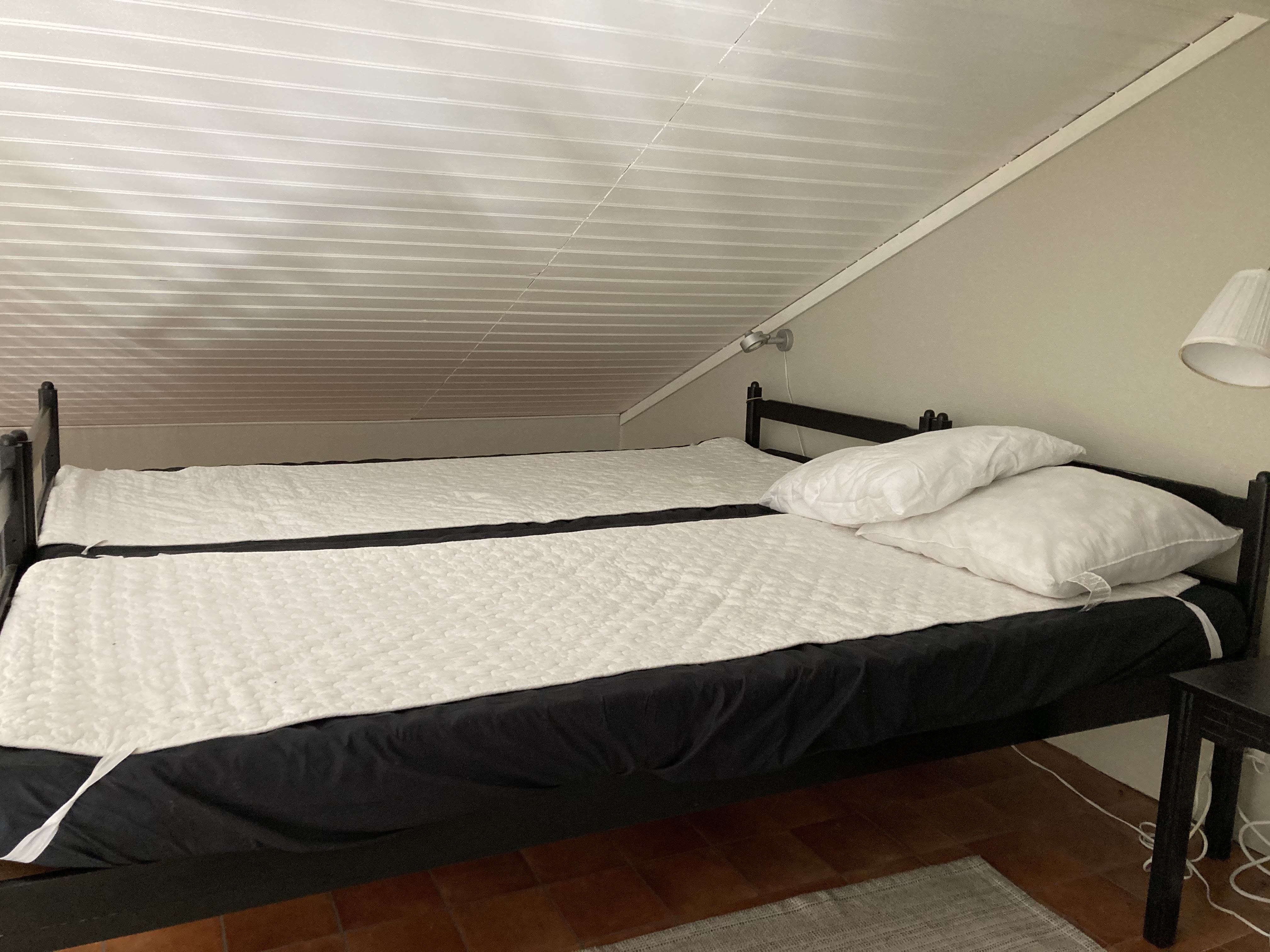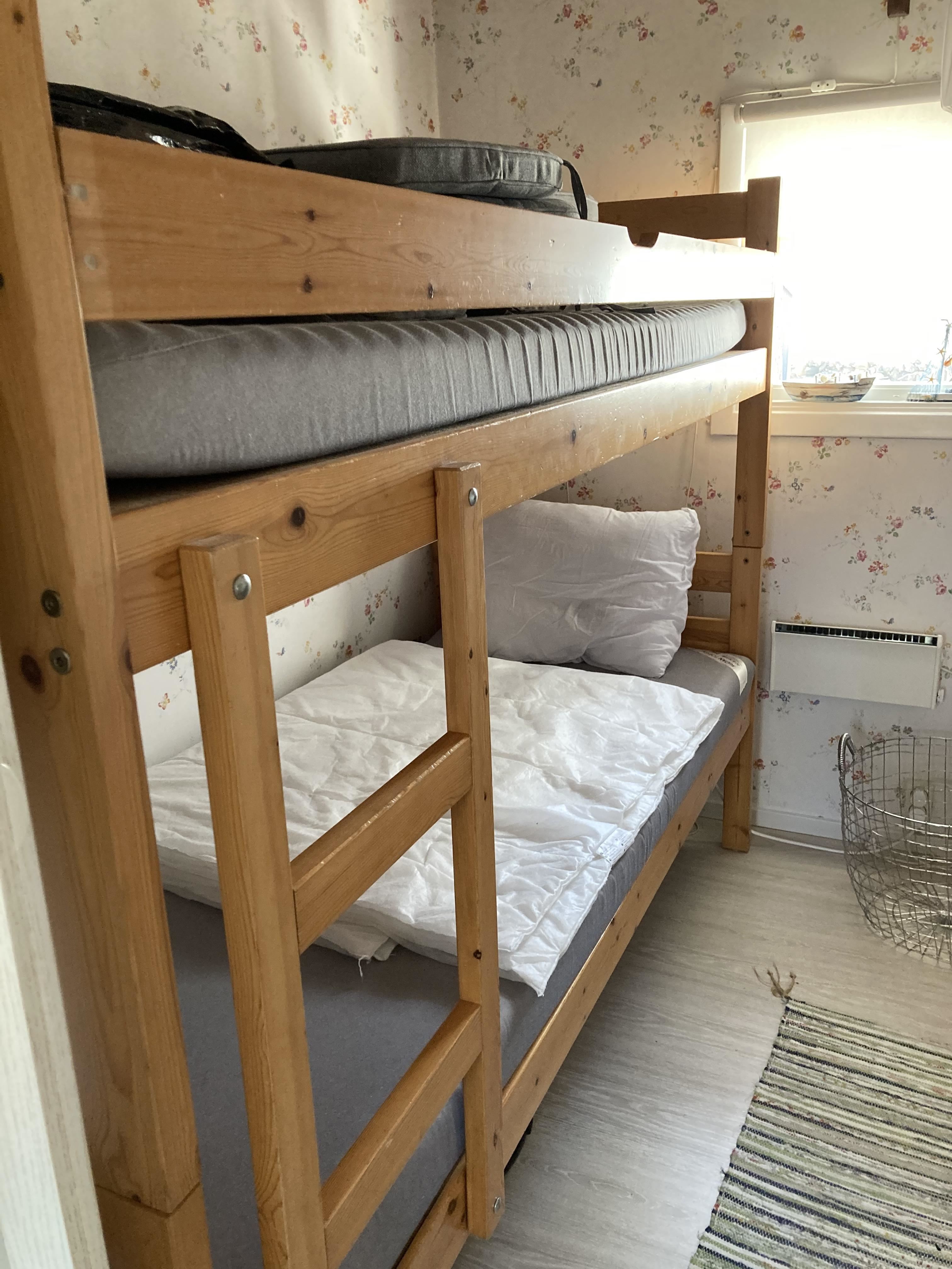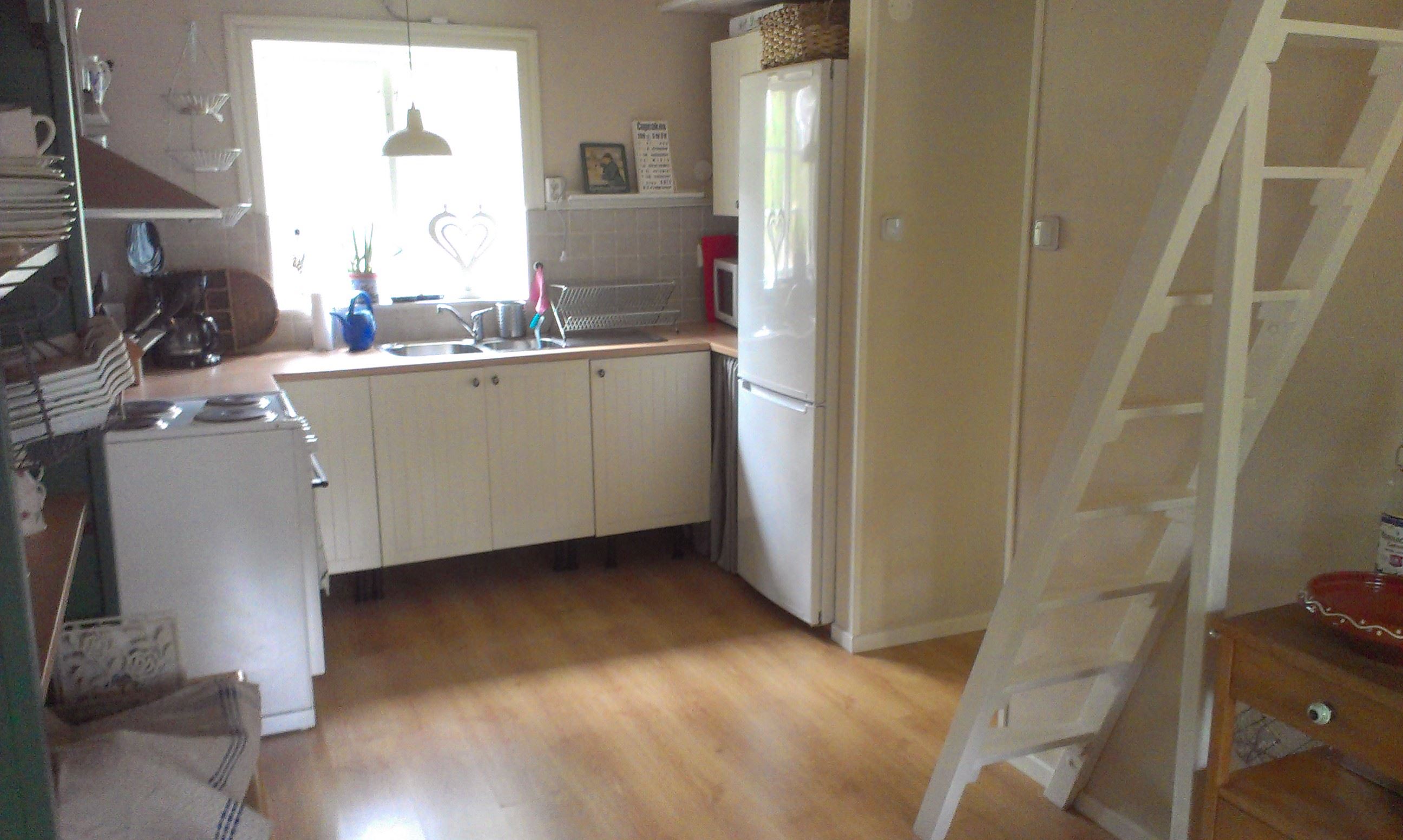 The cottage of 57m² is partly newly built (older part built on) has kitchen with electric stove (4 plates) fan, refrigerator and freezer, microwave, coffee maker. In the kitchen, the steps also go up to the attic. Living room with sofa group, TV with the free channels and wood burning stove included. 6 regular beds and 2 extra beds that are added as extra cost. 1 bedroom with a double elastic bed, 1 bedroom with a bunk bed (80 cm wide) and a loft with 2 beds (slatted base and foam mattresses) and 2 beds in a sofa bed. WIFI is available.
