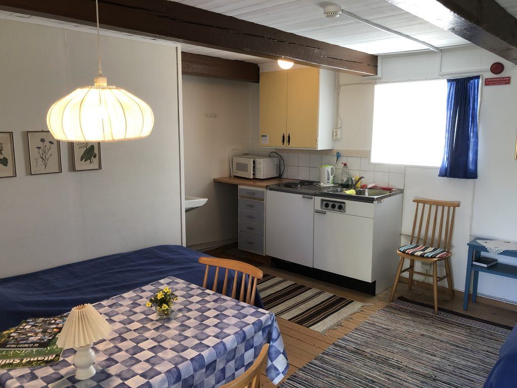 På gården finns totalt 11 rum med självhushåll. Pentry finns på alla rum. Bakom byggnaden är en husvagnscamping iordningställd med eluttag.