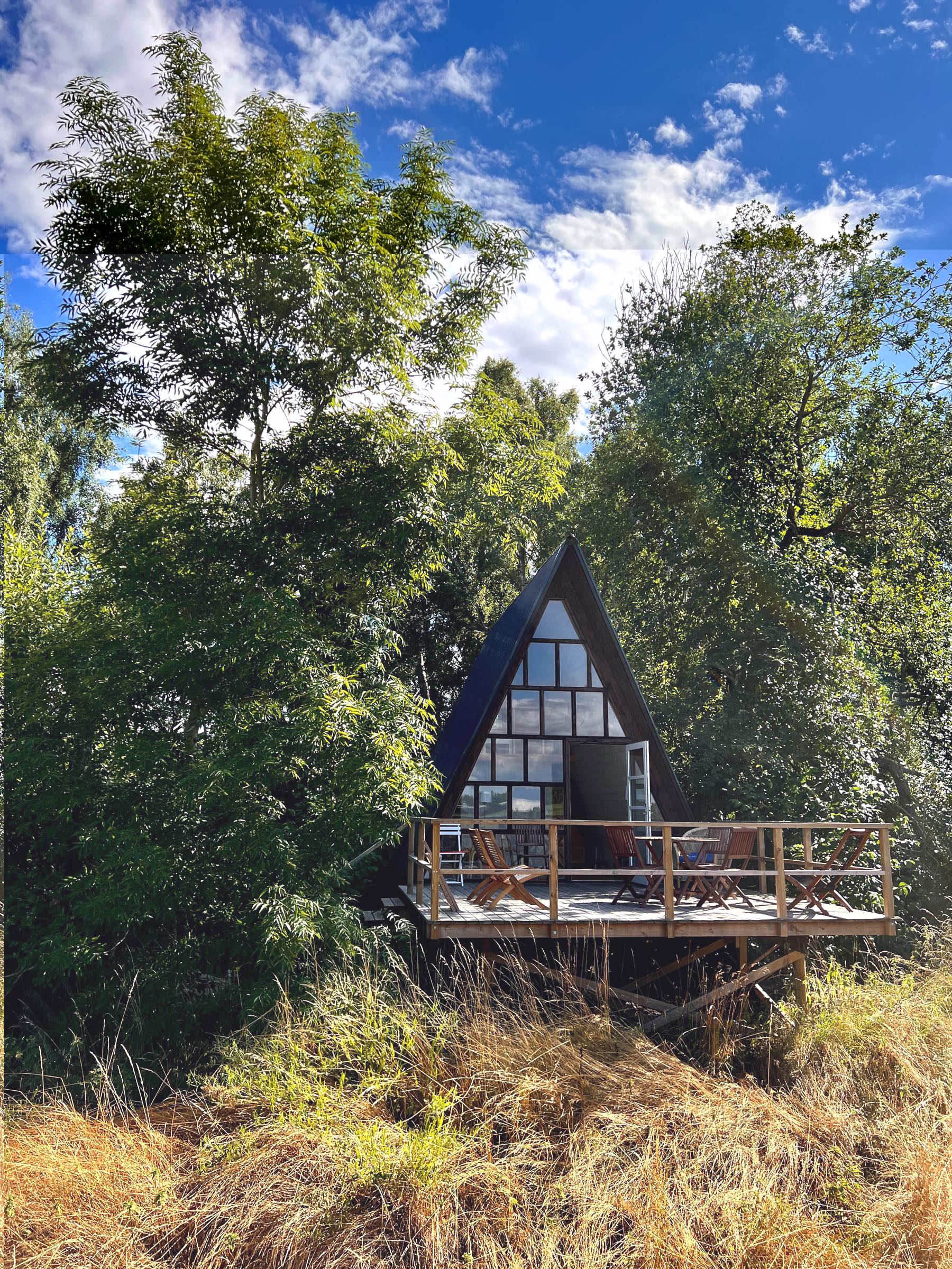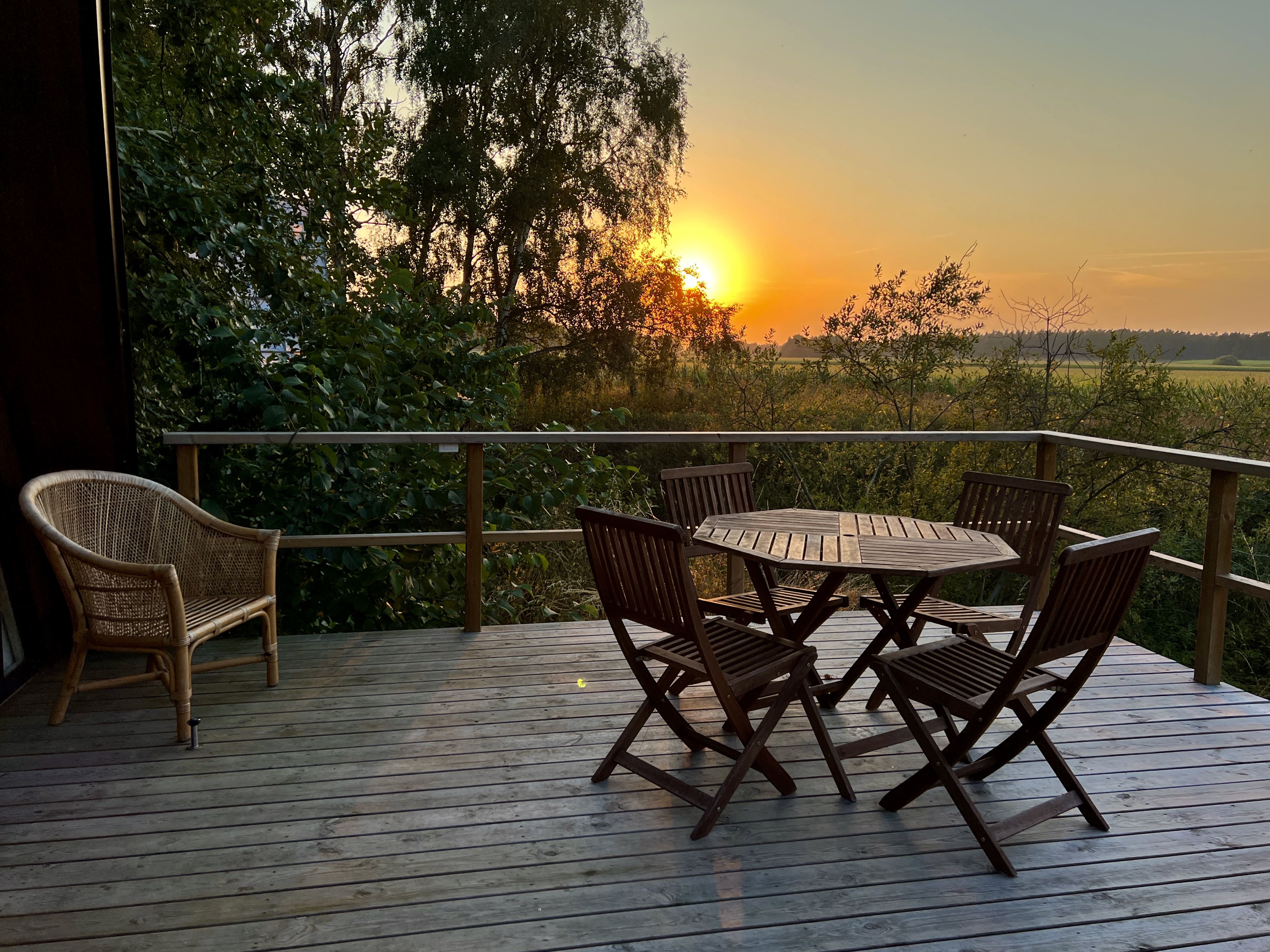 Välkomna att stiga in i naturen och koppla av till fågelsång och trädens sus. När du följer spången genom träden så gömmer sig två nybyggda A-hus vid andra änden. Husen ligger inbäddade vid skogens kant, med stora terasser och vidsträckt utsikt över öländskt landskap. Här har du himlen och fåglarna som närmsta granne. Eftersom den lilla skogen får råda som den vill, är naturen vild och bjuder en riklig biologisk mångfald.
