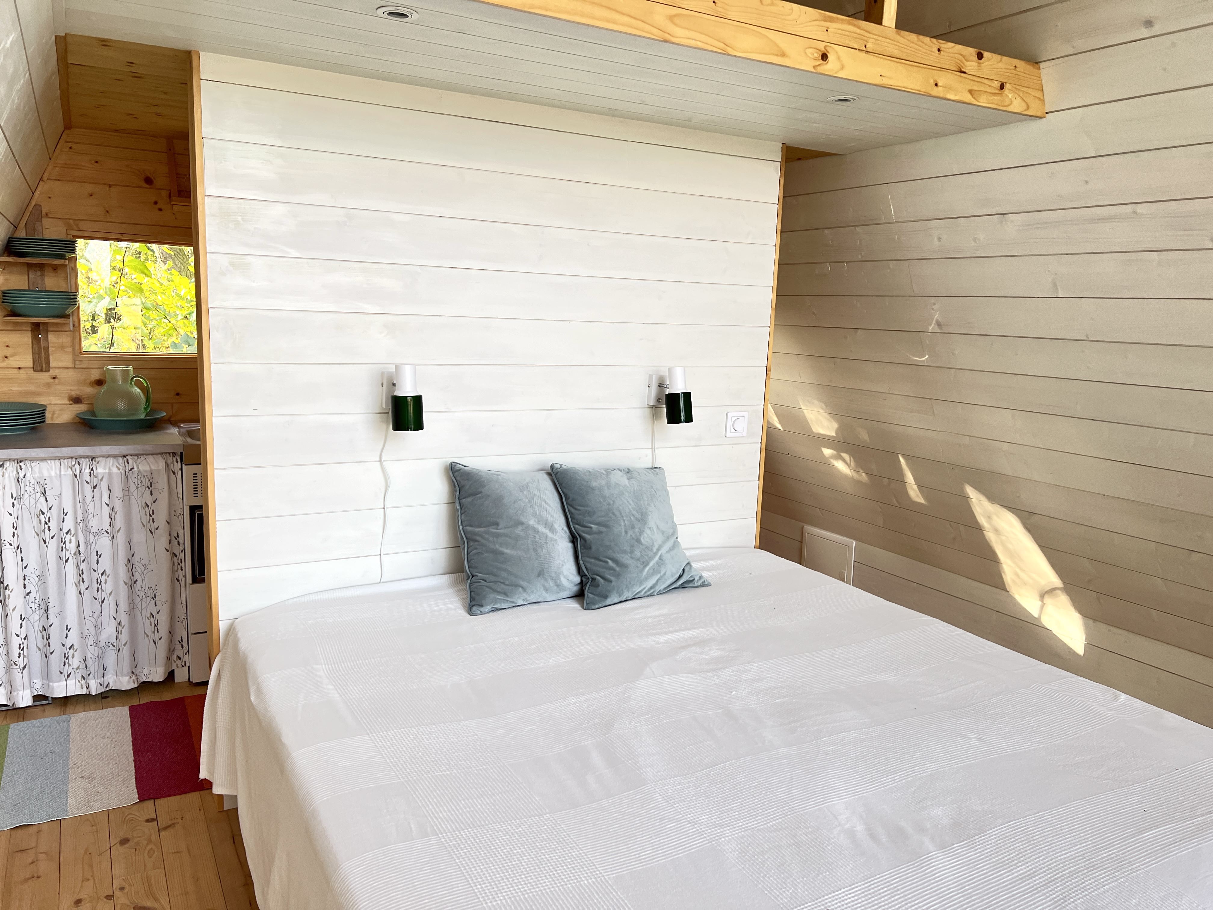 Husen är tänkta för två personer (men det ena har även plats för tre). Varje hus har eget kök, kyl och micro, samt porslin och vad som behövs för att laga mat och må bra.
