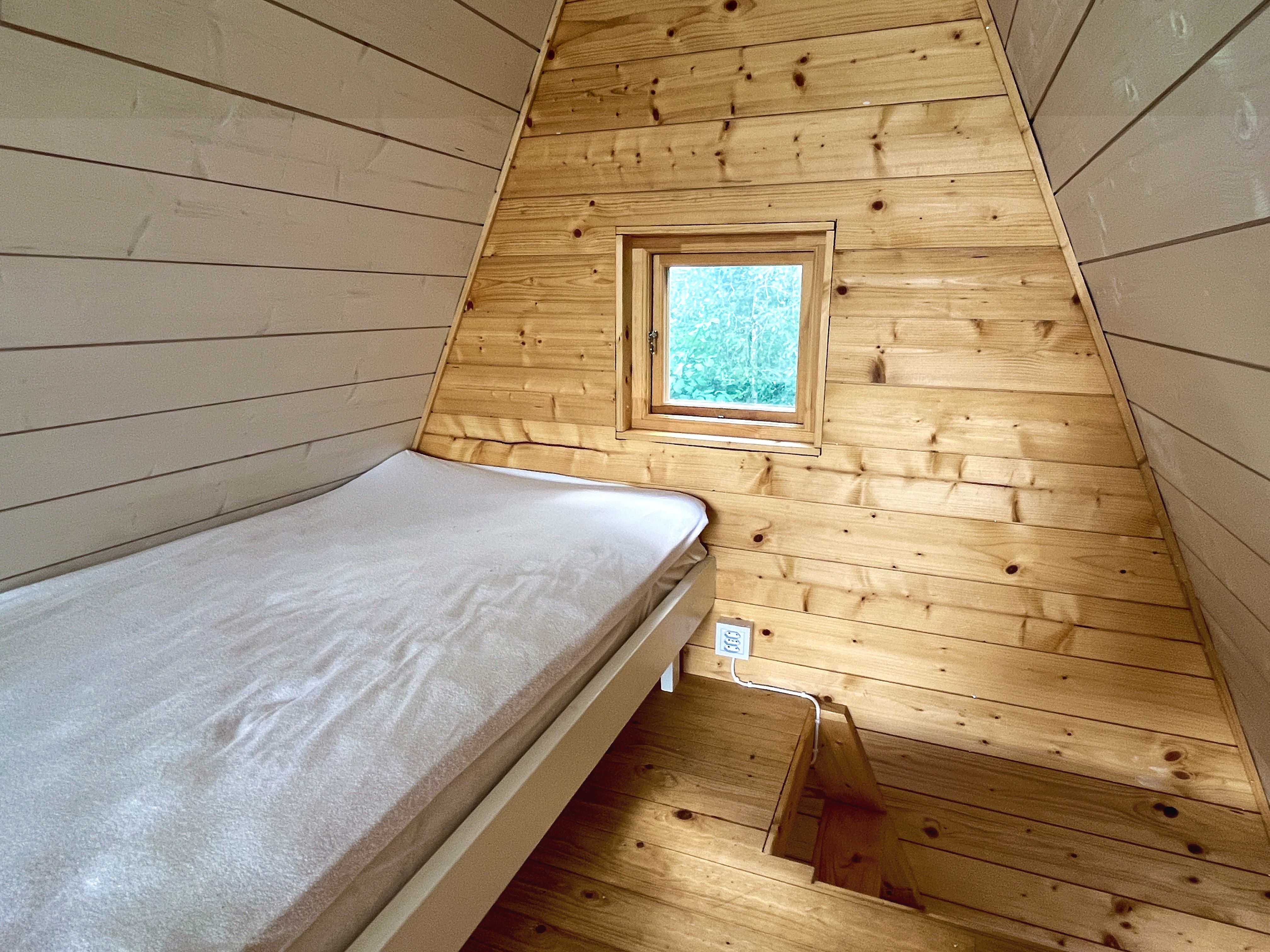 HUS 1 har tre bäddar: en 180 säng och en 90 säng på loft.