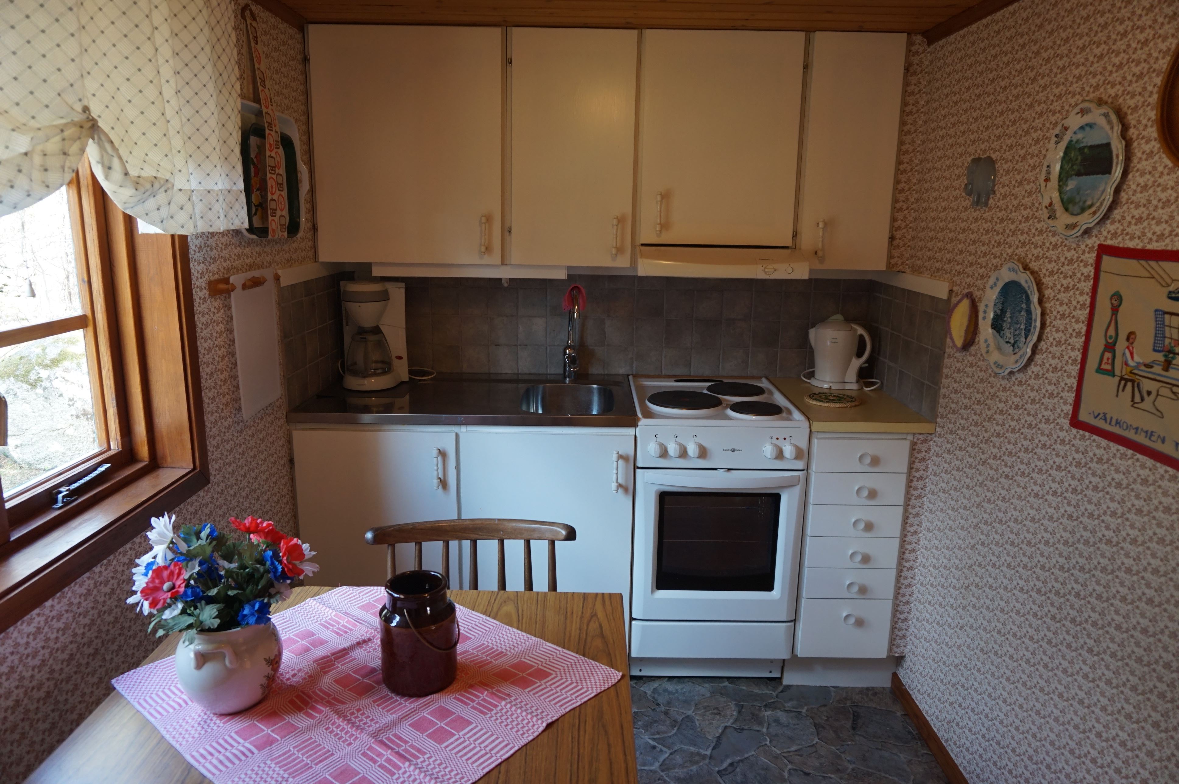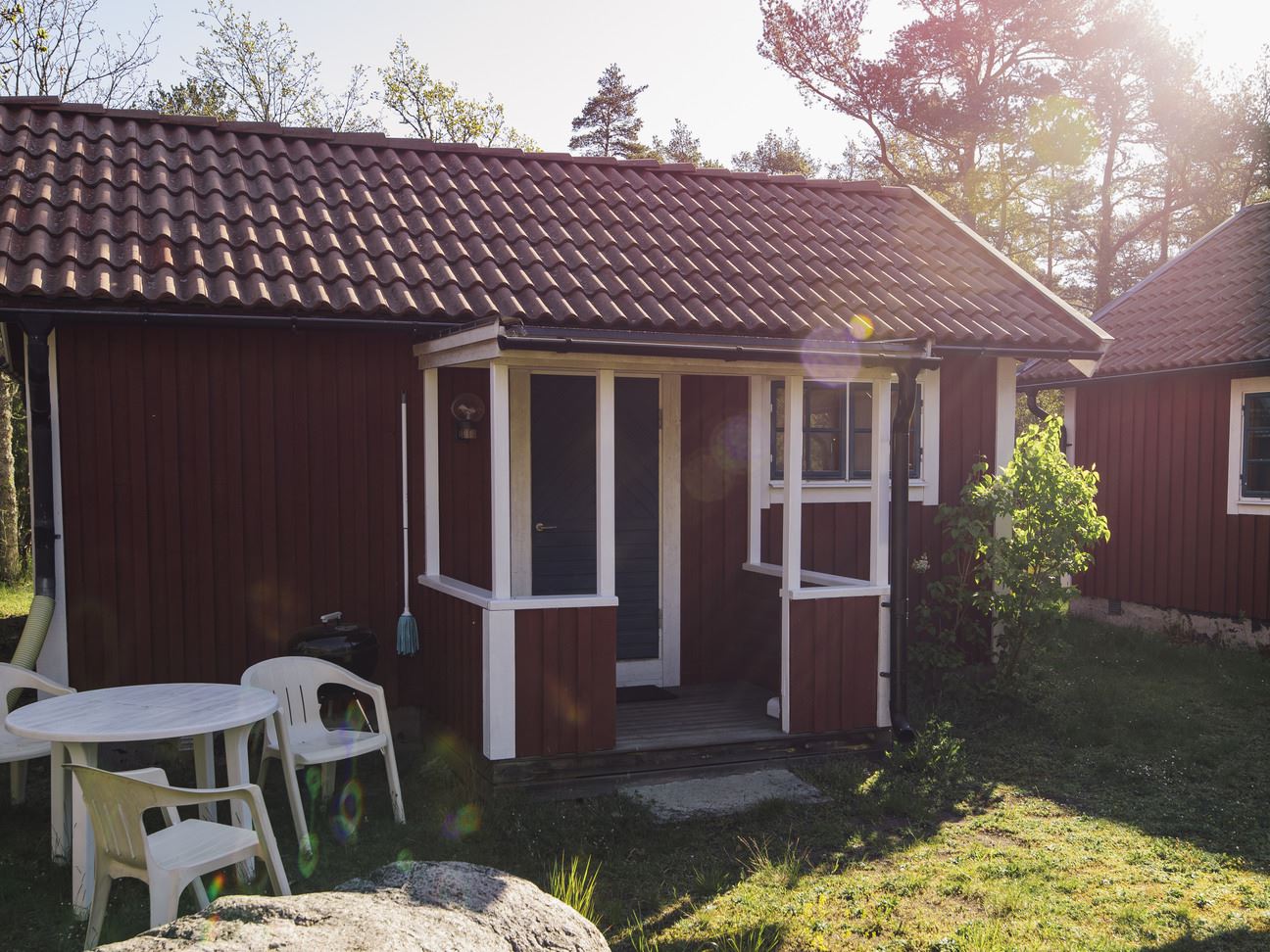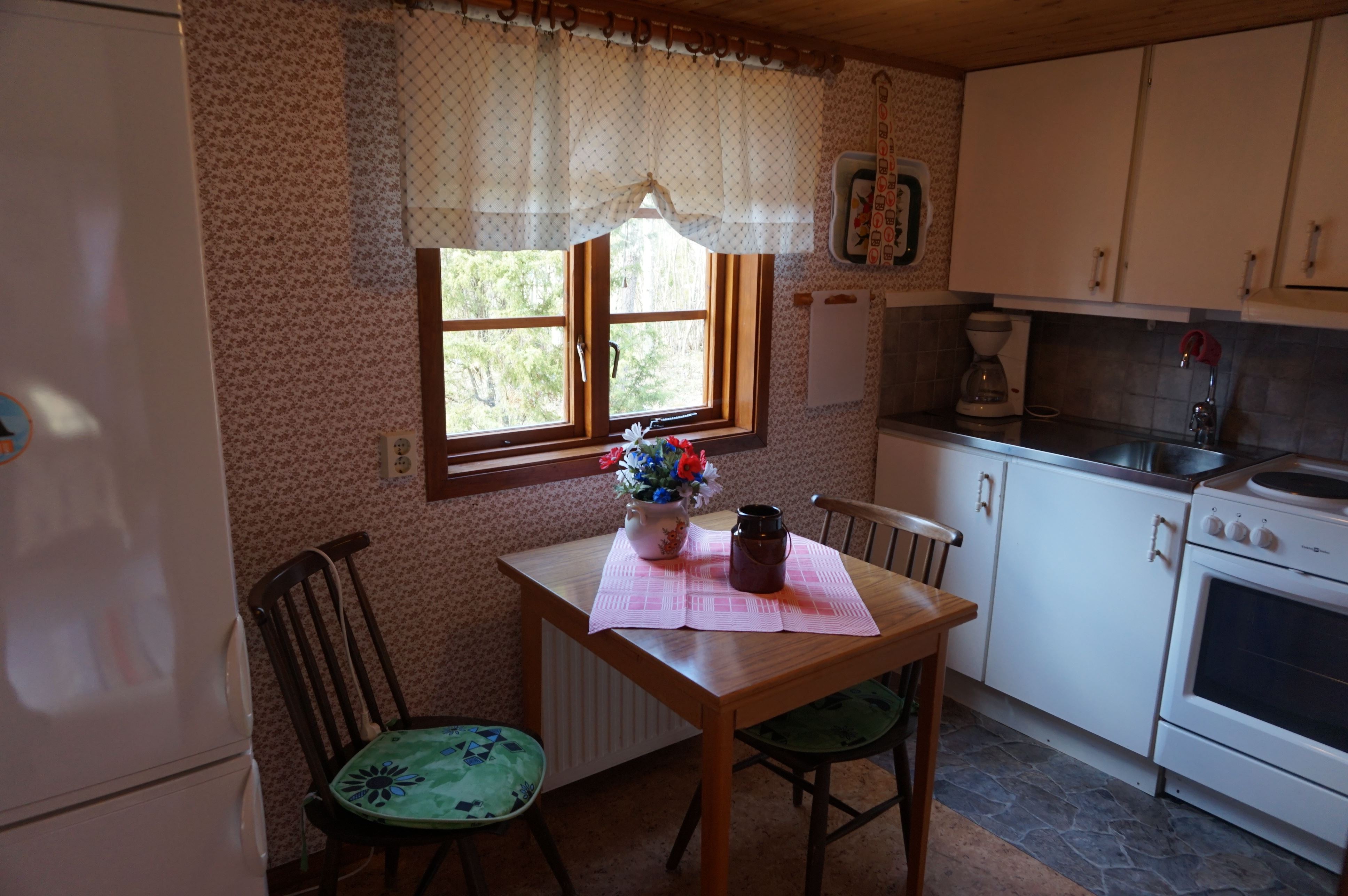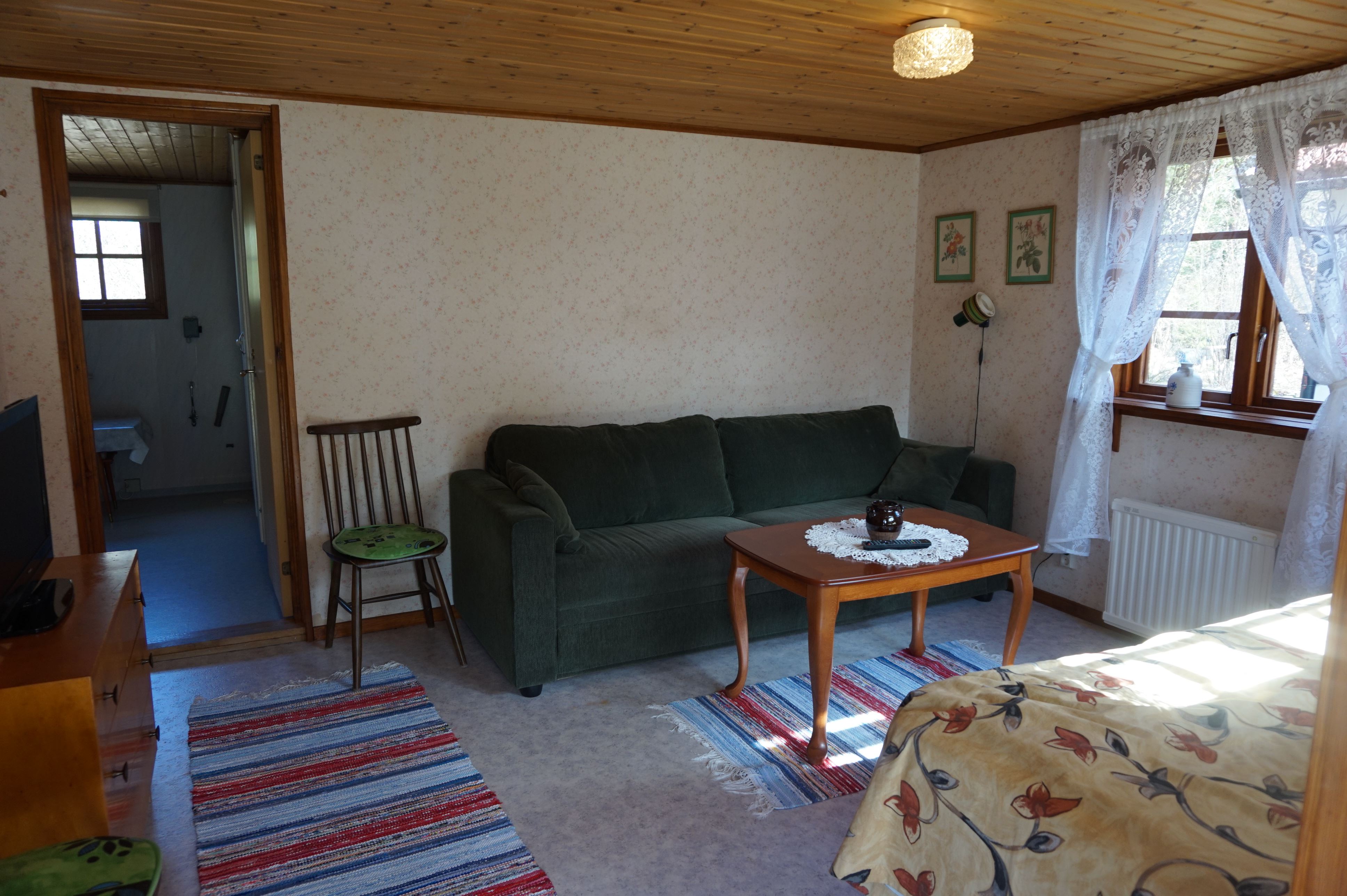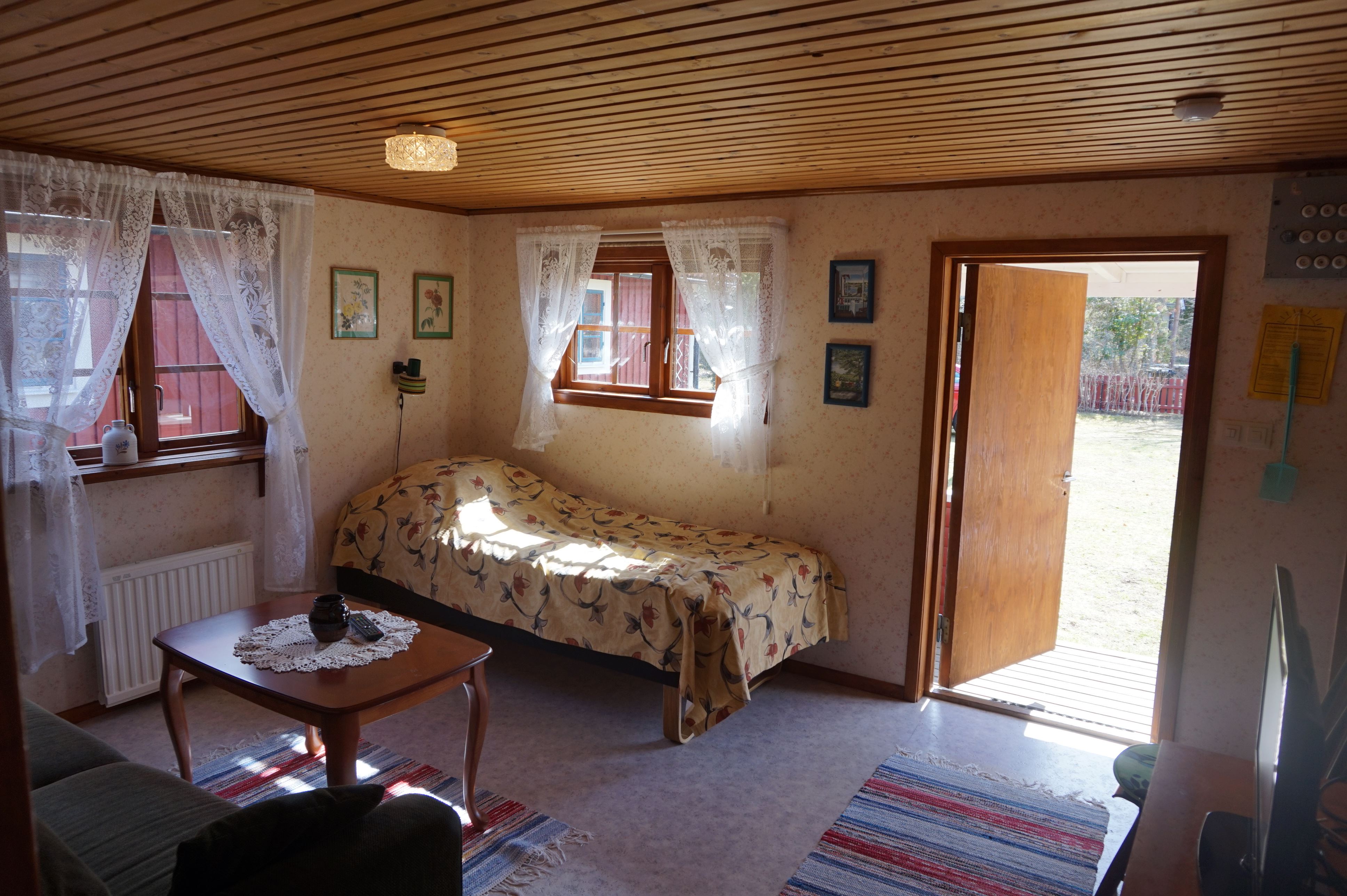 Stuga 30m² med kök, elspis med 3 plattor, kyl, frys, kaffebryggare och vattenkokare. Vardagsrum/Sovrum med en ny resårbädd 90x200 cm. Två bäddar i en bra bäddsoffa. TV(kanaler 1,2,4) med DVD uttag. Stort badrum med dusch/WC, delad tomt med ett hus till som hyrs ut via Ölands Turistbyrå O110031 som har egen uteplats på baksidan. Egna utemöbler. Grill.
