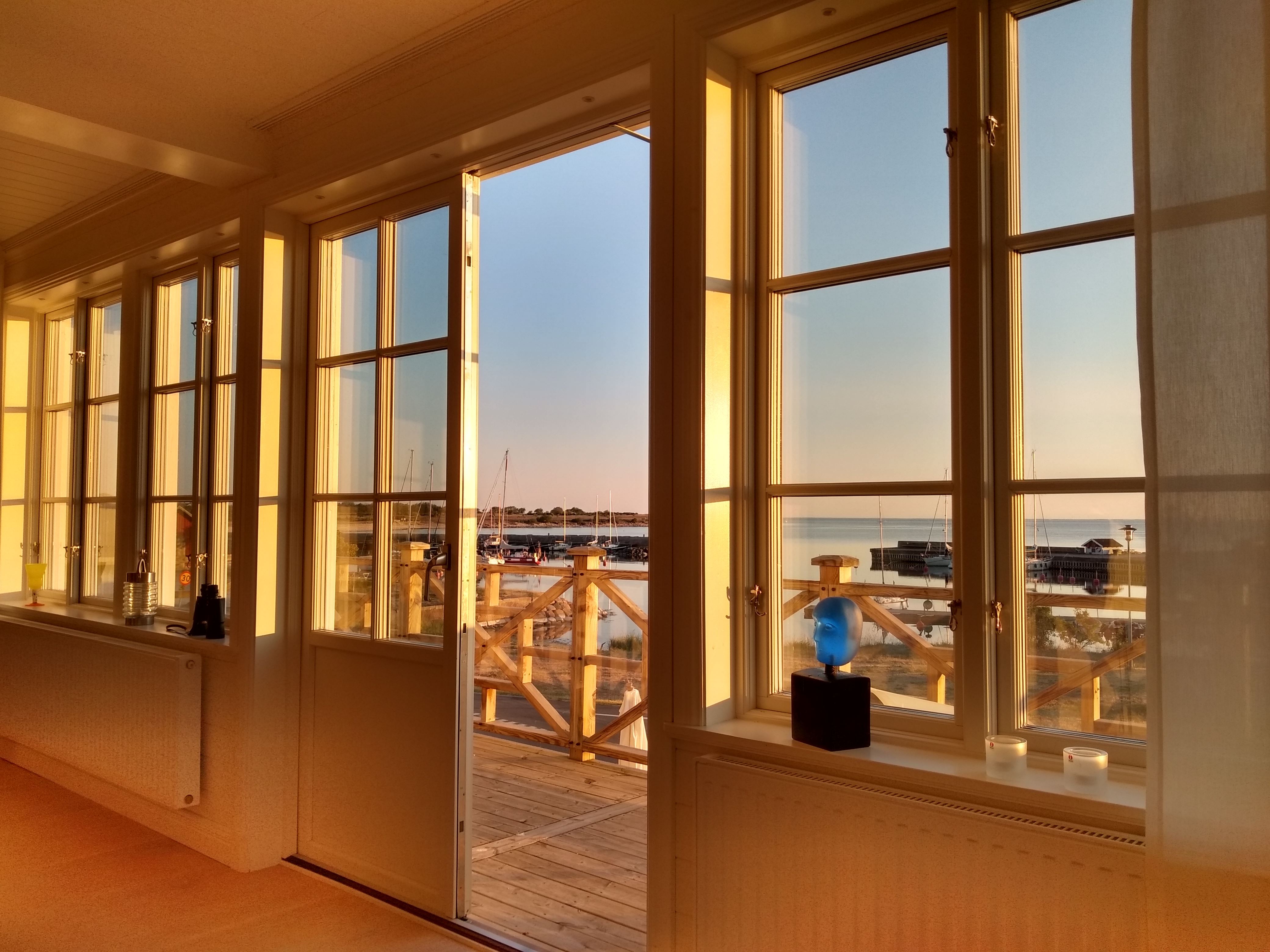 I anslutning till lägenhetens rymliga entré finns en veranda med trädgårdsmöbler som du delar med två grannlägenheter. Allmänna grillplatser finns nära lägenheten vid vattnet. Grill finns att ta med. I Sandvik kan man uppleva magnifika solnedgångar.