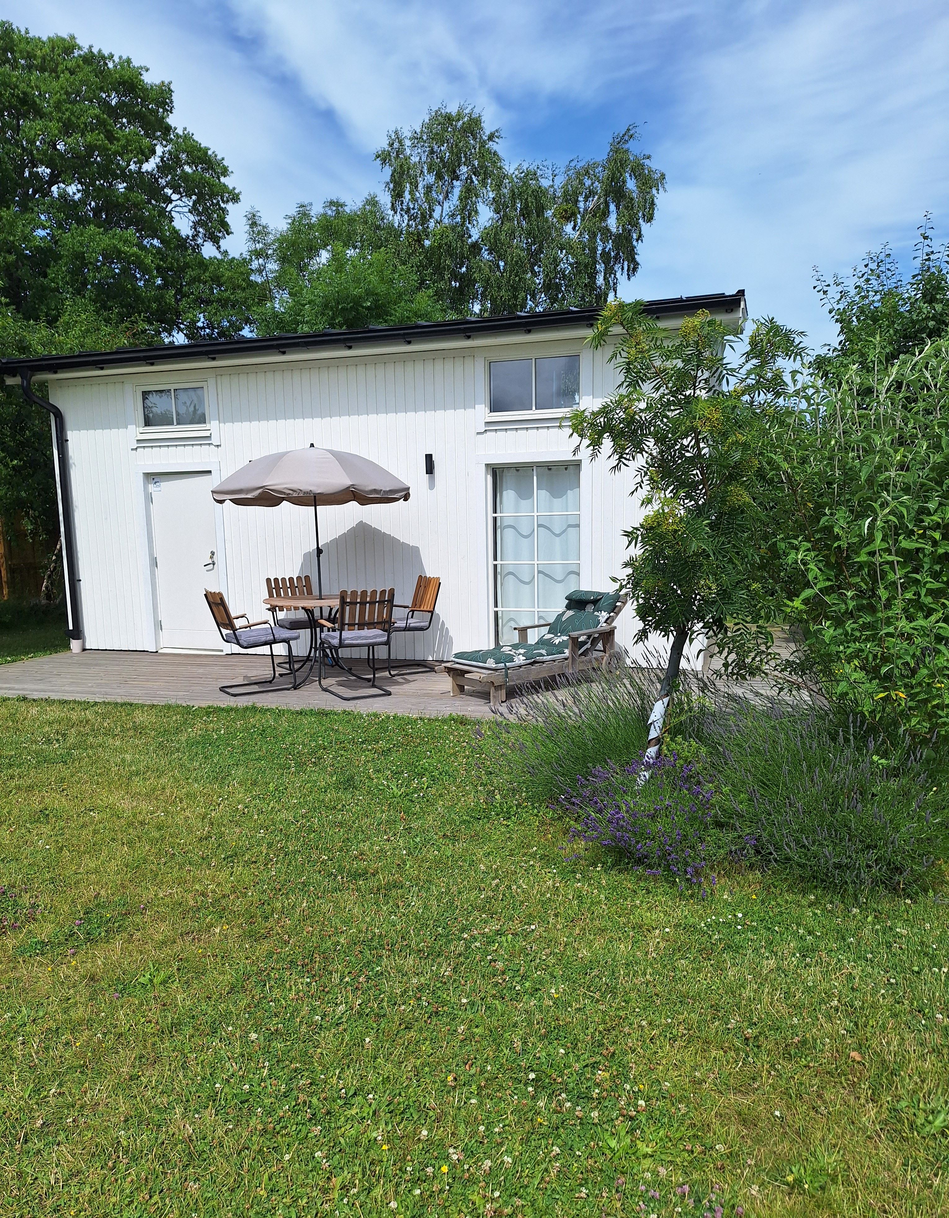 Fräsch Attefallsstuga 25m² i Borgholm med närhet till stadens restauranger, butiker, caféer och evenemangsutbud. På ägarens tomt. Egen del av trädgård. OBS! Lakan och slutstädning ingår i priset.