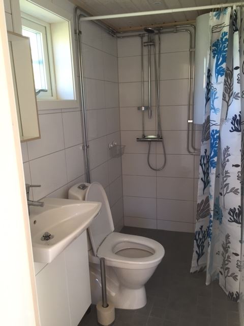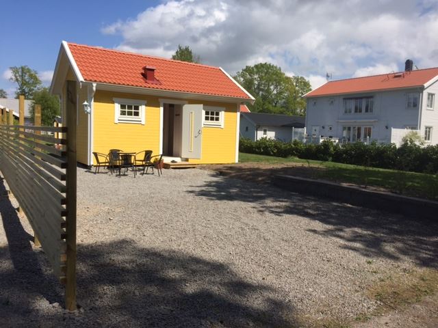 Stuga på 35m2 på delad tomt med ägaren. Stugan har ett allrum med köksdel (El-spis , köksfläkt, kylskåp, frysfack , kaffebryggare diskmaskin