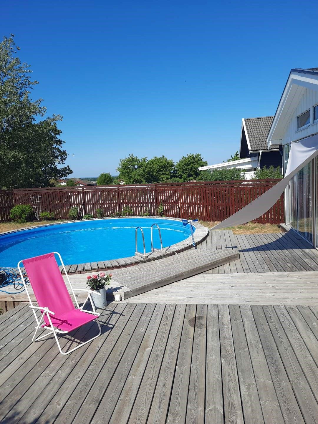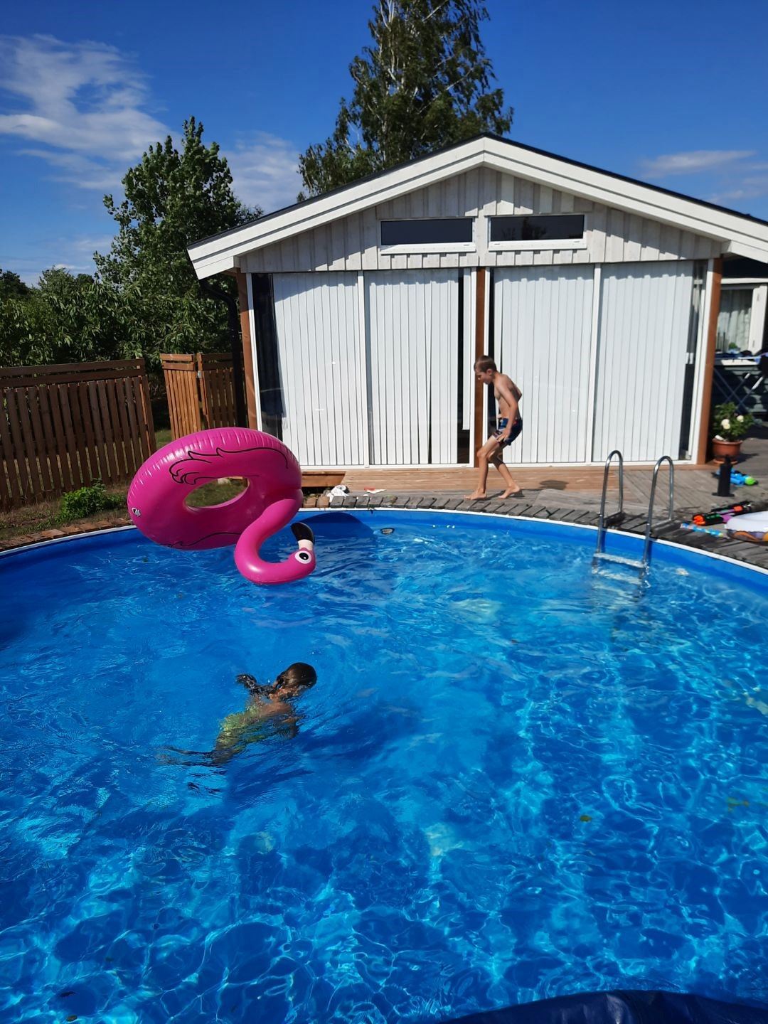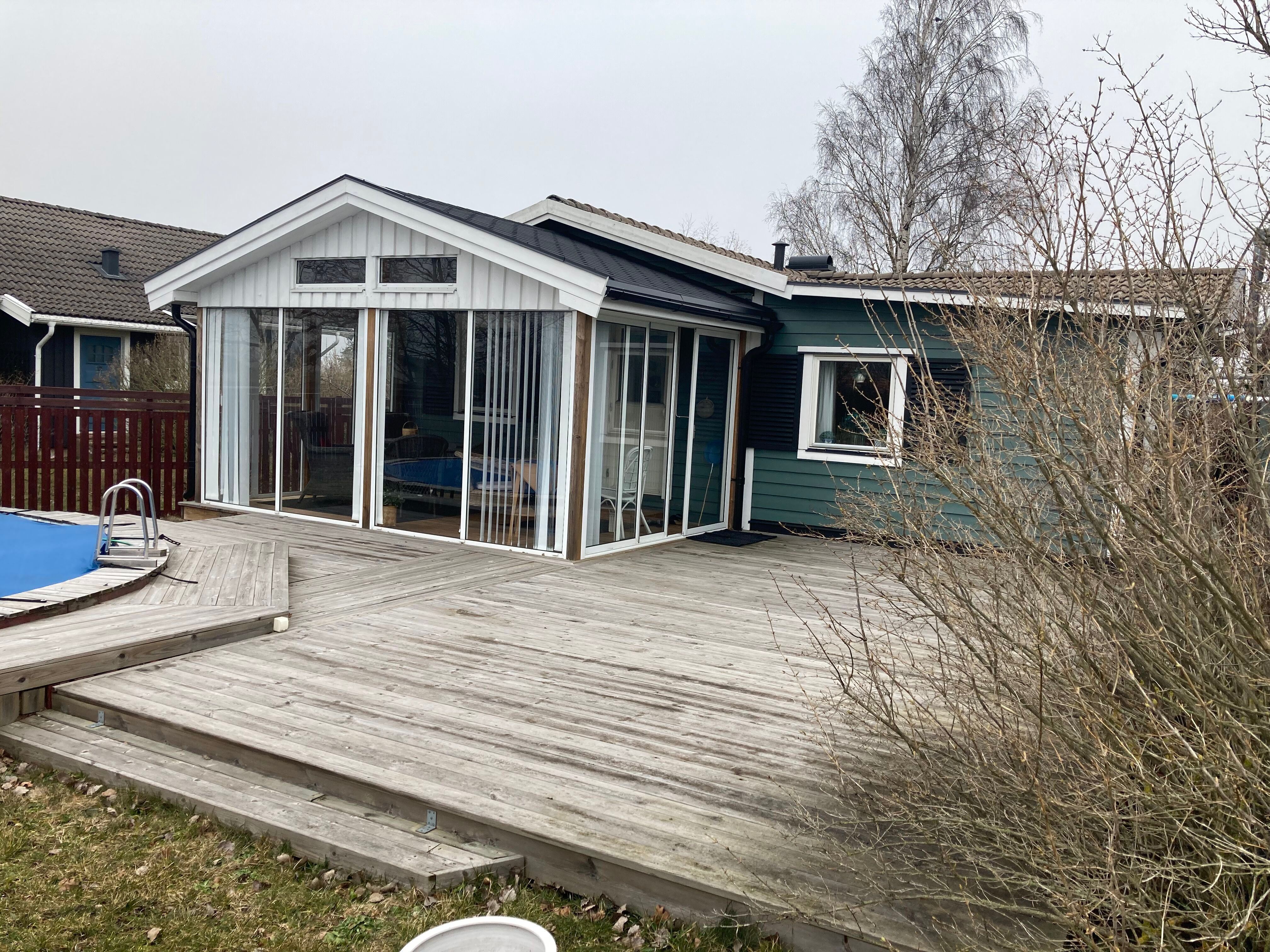 Stuga på 95 m² med pool och inglasad altan för 4+1 personer i mysigt stugområde i charmiga Karlevi.