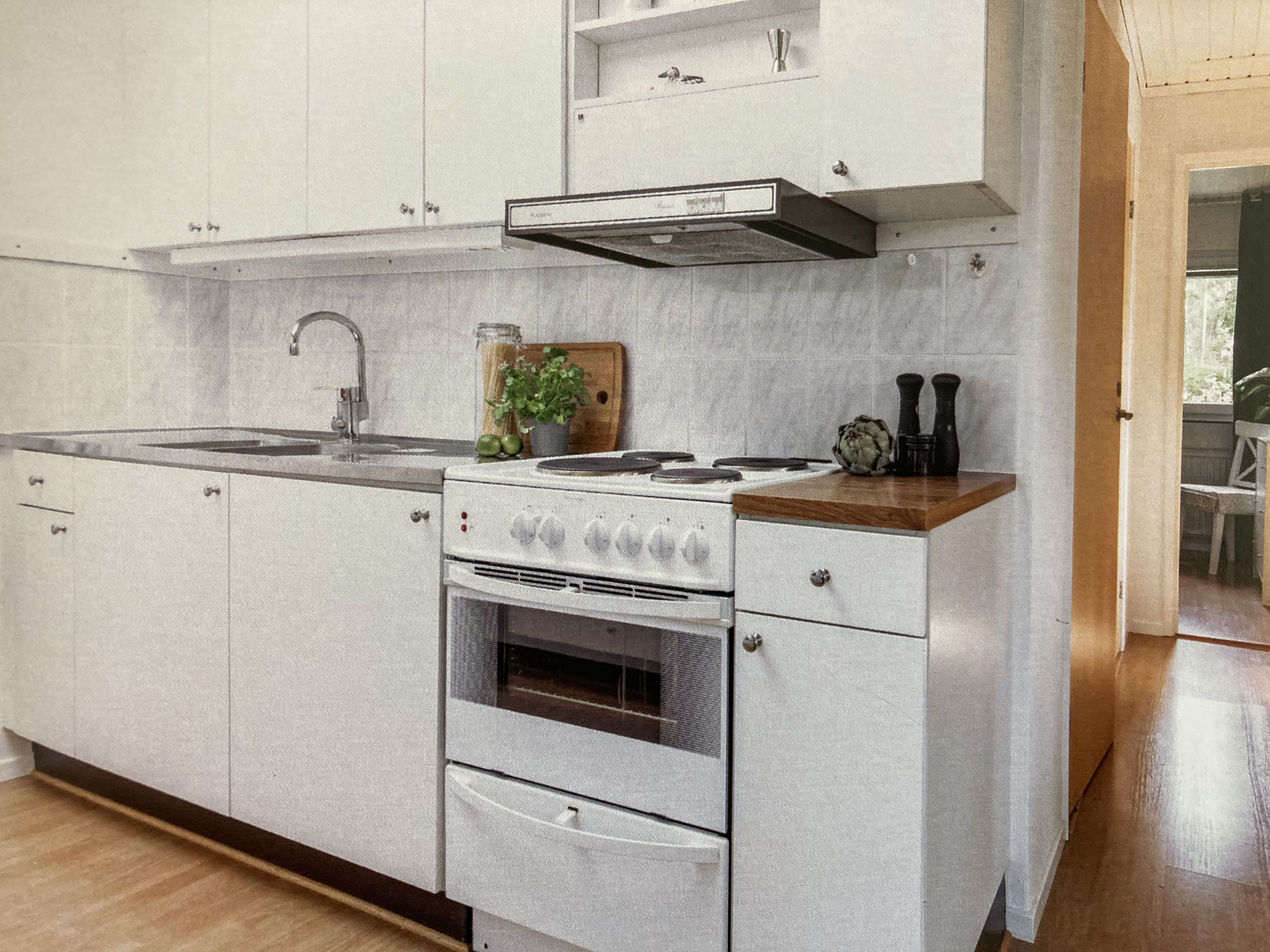 Stugan är fräsch med ljust kök med takfönster för extra ljusinsläpp. Spis/ugn, kyl och frys, mikro, kaffebryggare, vattenkokare. Ljust allrum/vardagsrum med matplats, soffgrupp,