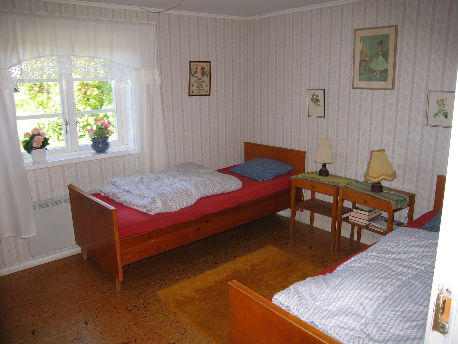 Villa: 100m², nedre botten, kök med spis, ugn, kyl och frys, mikro, kaffebryggare. Vardagsrum med TV, sovrum med två bäddar, sovrum med två bäddar alla är resårbäddar (ej dörr in till detta rum). Dusch, WC och bastu. Tvättmaskin. Egen tomt precis intill Alvaret. Tomten är delvis naturtomt. Rökning inomhus är ej tillåtet. Husdjur får ej medföras. Bad: Kalvhagen 4 km. Ort: Mörbylånga 4 km.