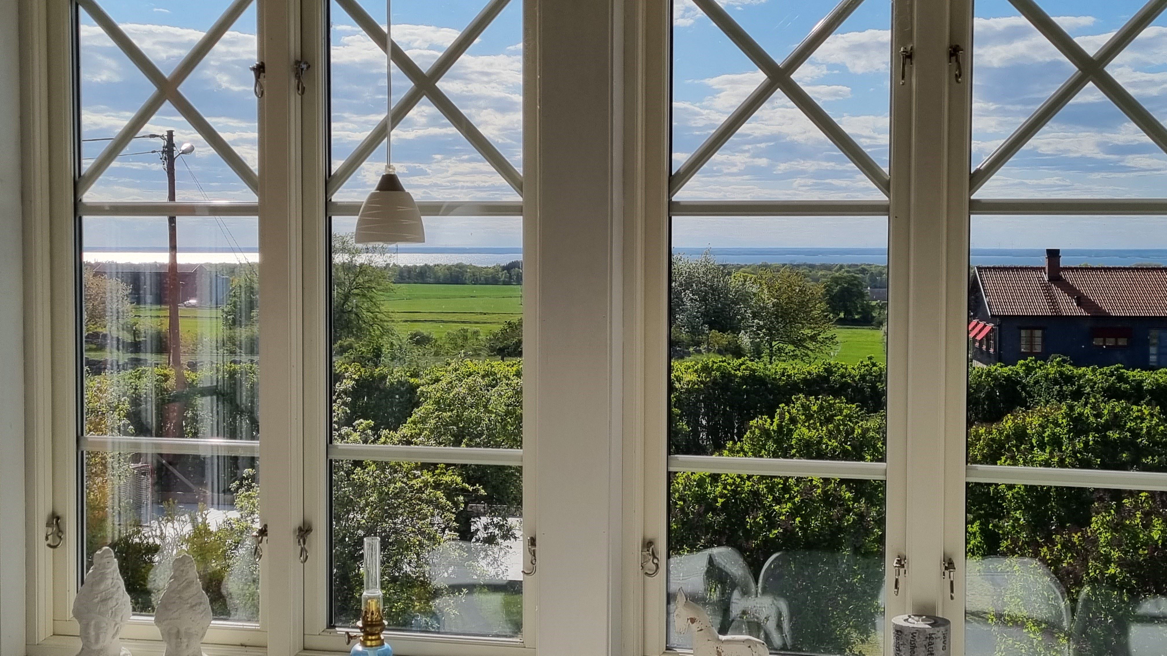 Boende för 10 personer i Villa samt liten stuga på egen tomt nära Vickleby alvar. Här finns egen uppvärmd pool och balkong med havsutsikt över Kalmarsund. Barnvänligt.