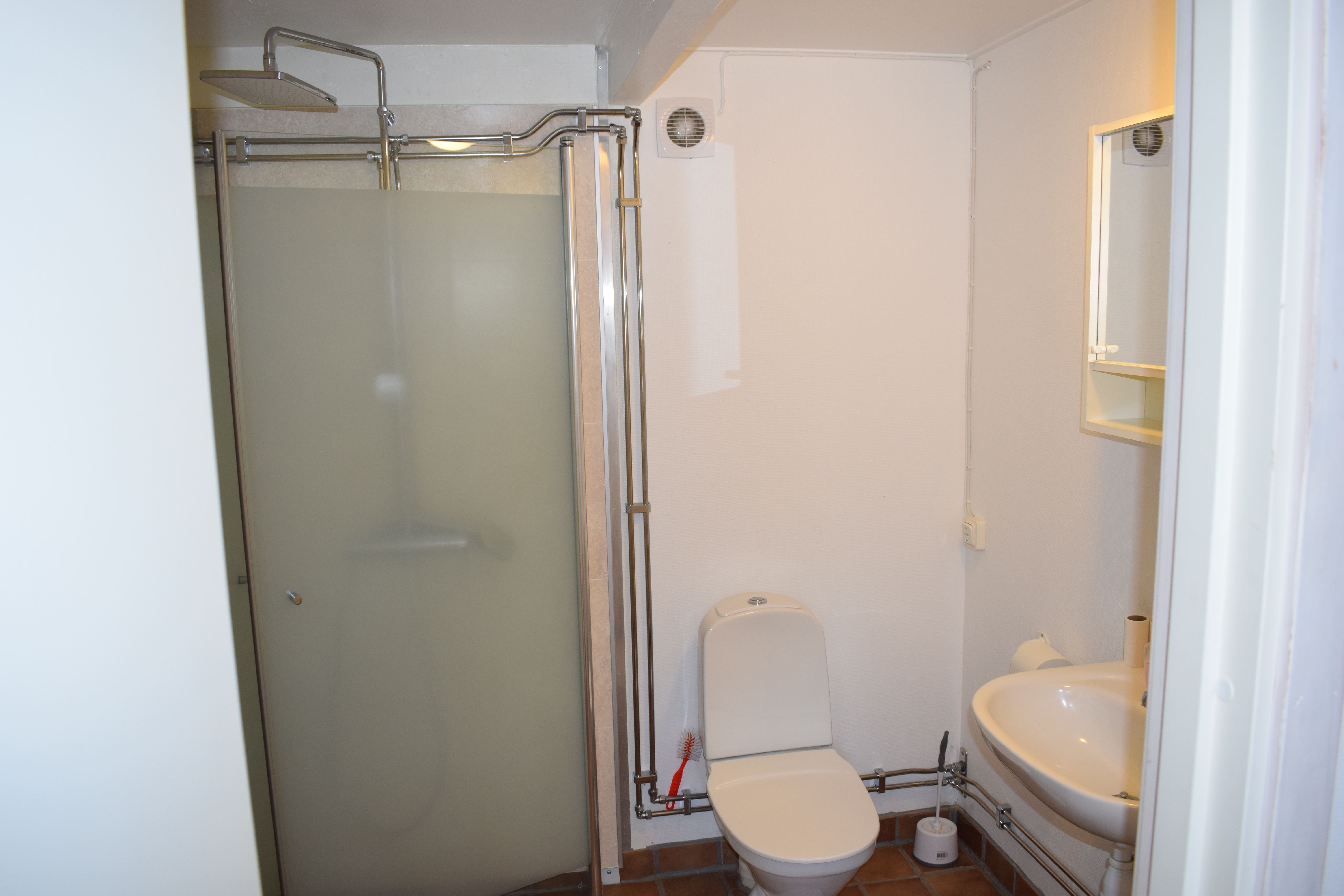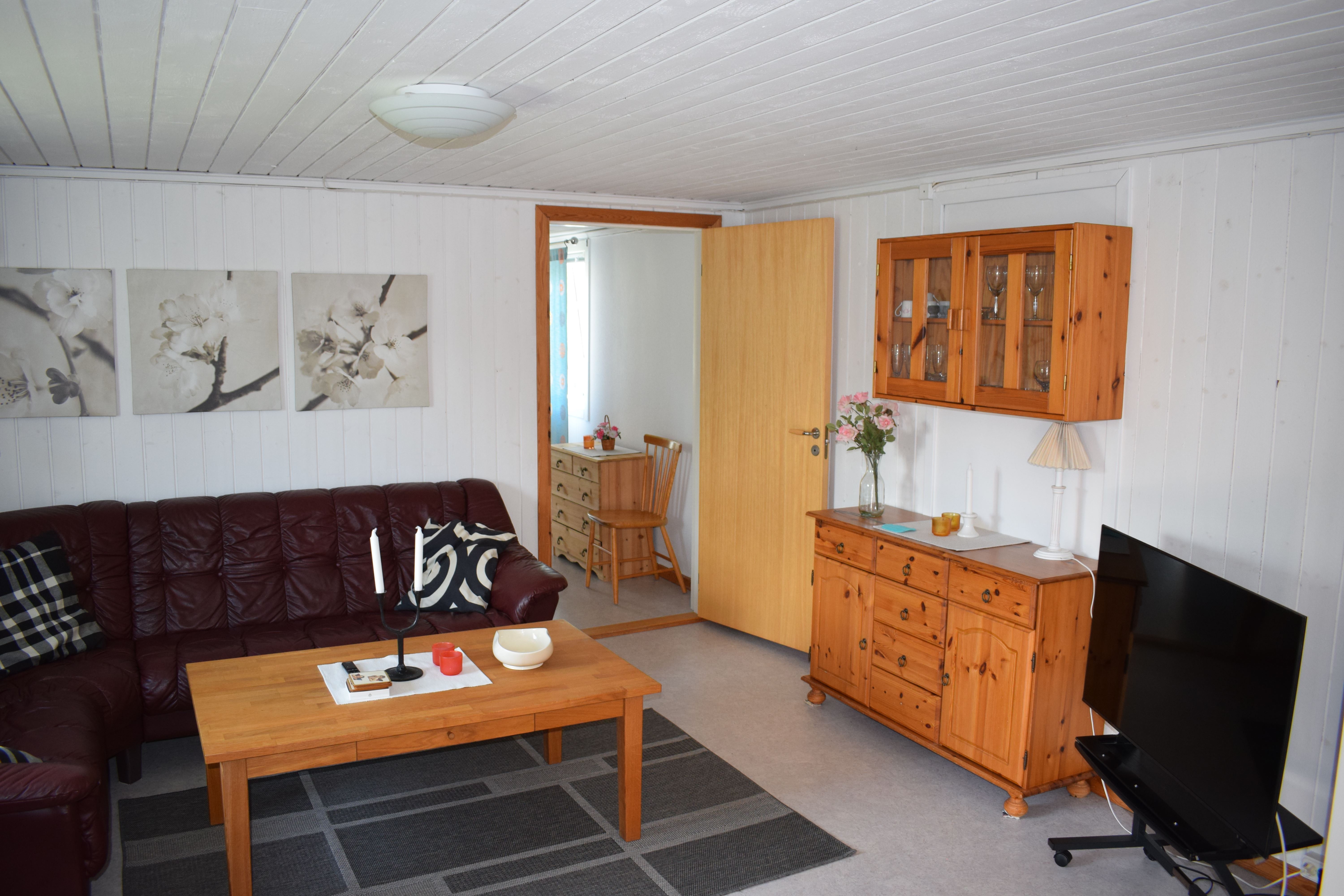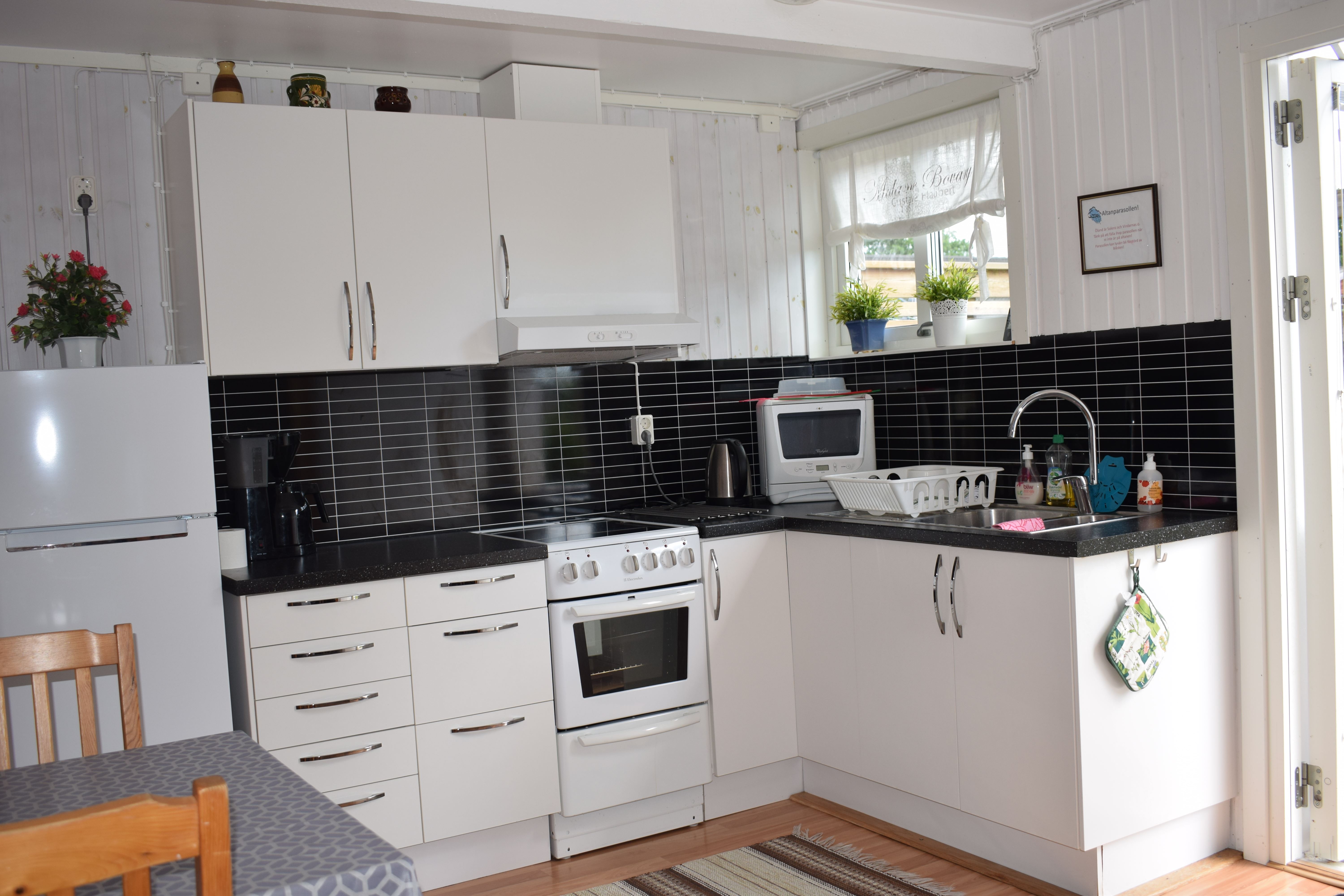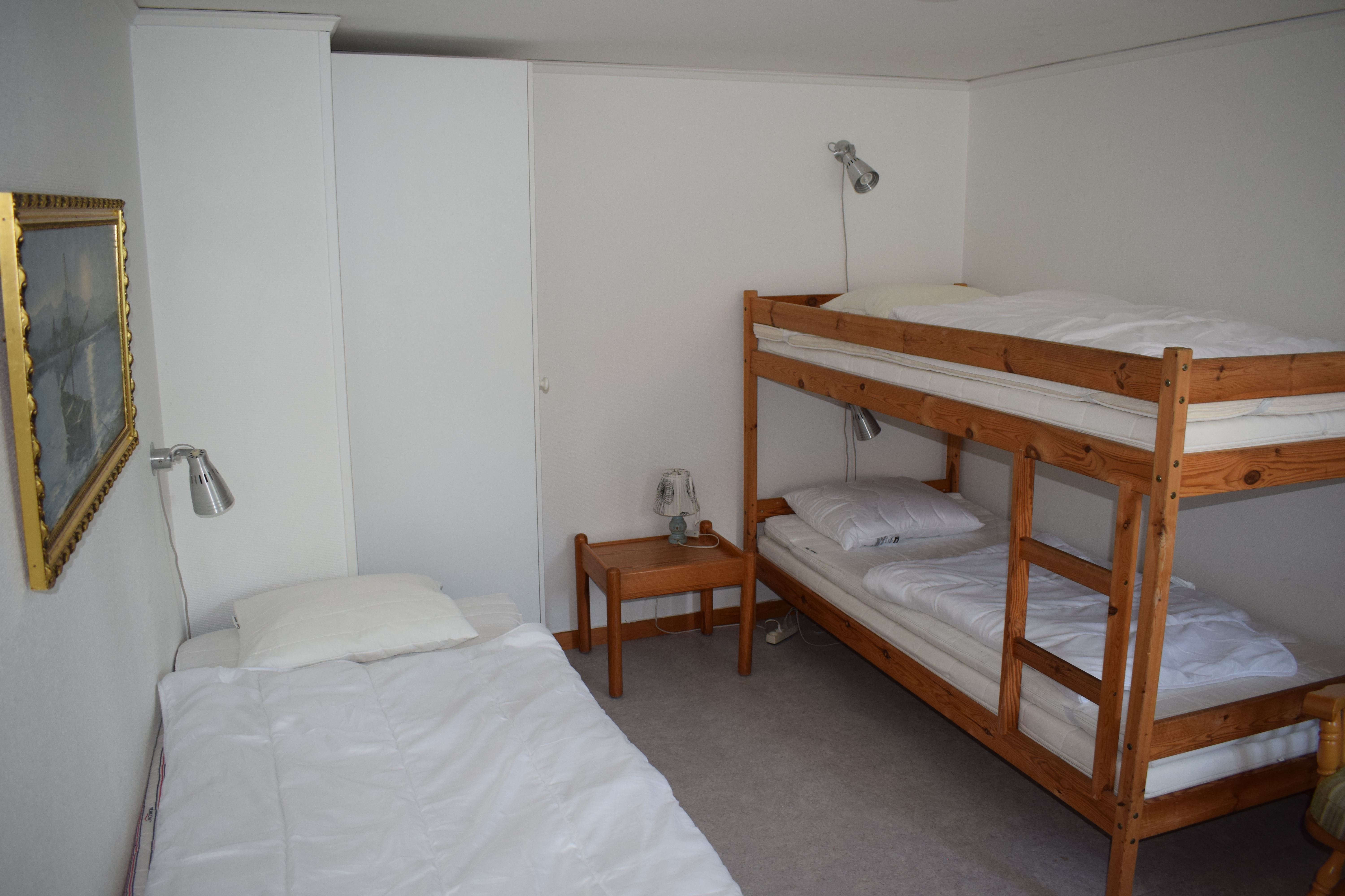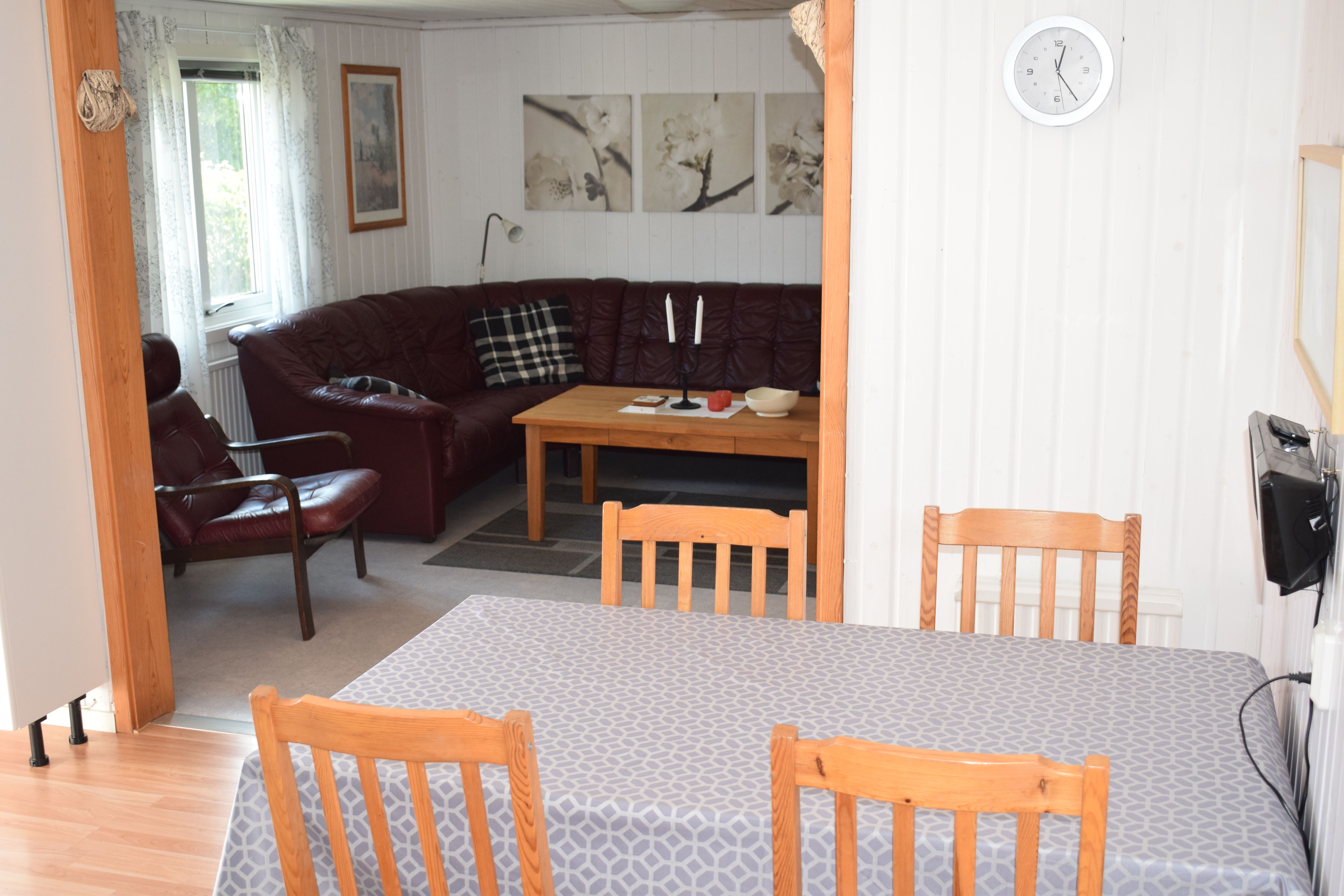 Egen del av stuga på: 55m2, fullt utrustat kök med keramisk spis/ugn, kyl-och frysskåp, micro, kaffebryggare, vattenkokare, varmt och kallt vatten. Vardagsrum. TV. 1 sovrum med 1 våningssäng och 1 enkelsäng (genomgångsrum) och 1 sovrum med dubbelsäng/resår. Dusch/WC. Altan. Grill finns. Tillgång till tvättmaskin mot avgift i direkt anslutning till stugdelen. Spjälsäng finns.