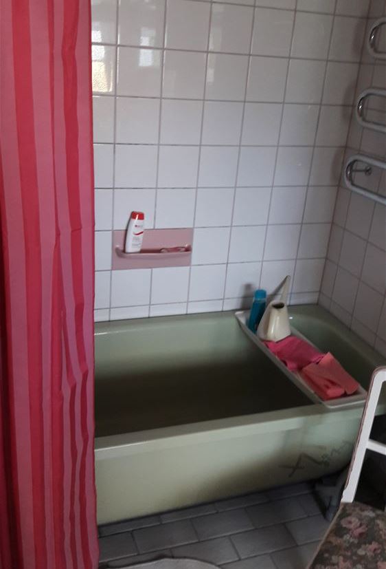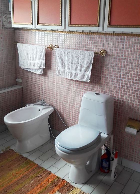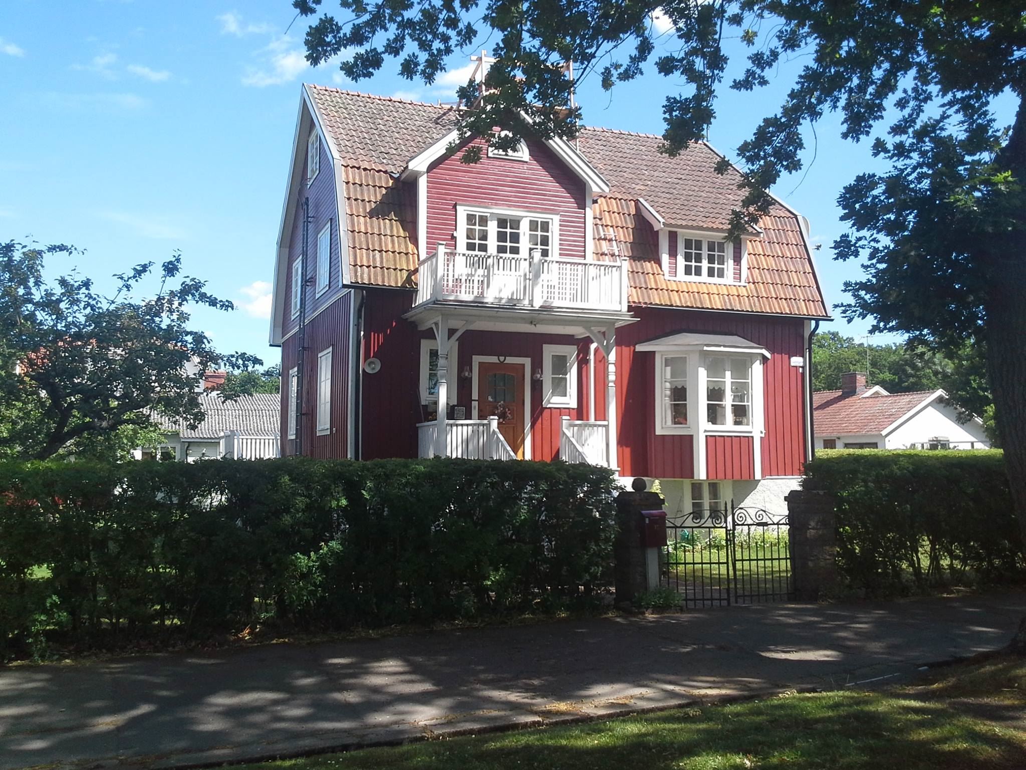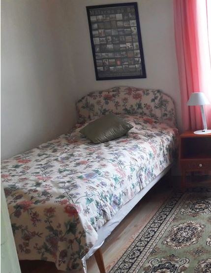 Trappor till entrén och till andra våningen där rummet är beläget. Rummet kan låsas med egen nyckel och egen nyckel till ytterdörren får gästen. Ytterdörren skall alltid hållas låst. På grund av vattenbrist uppmanar värdinnan er att endast duscha i badkaret.