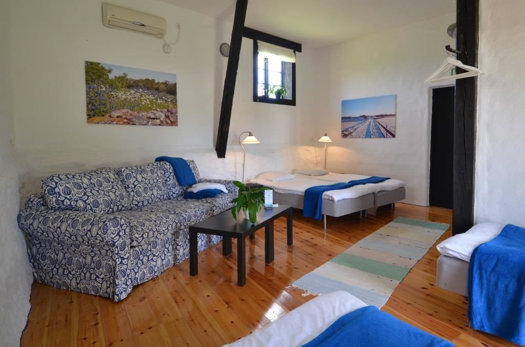 De stora familjerummen med plats för 6 respektive 8 gäster har egen toalett med dusch och är handikappvänliga. Dubbelrummen och det mindre familjerummet i huvudbyggnaden delar på fyra toaletter med dusch. Extrasäng går att sätta in i dubbelrummen för de lite större barnen. Husdjur är välkomna i gårdsstugan men inte i övriga Pensionatet. Gårdsstugan använder toaletter/duscharna i huvudbyggnaden.
