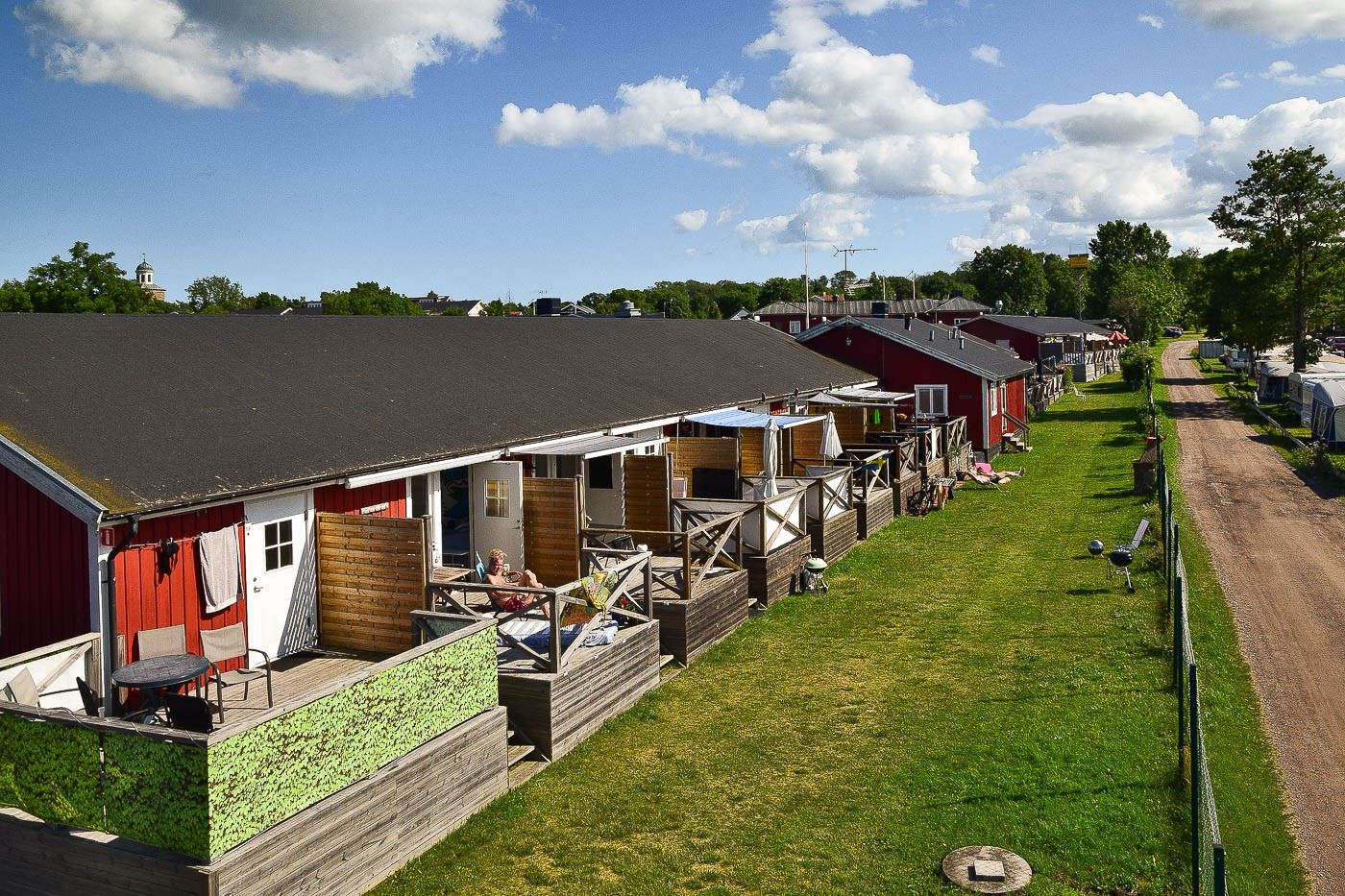 Solhyddans Camping och Semesteranläggning. Privatägda lägenheter med egen ingång i röda enplanslängor.