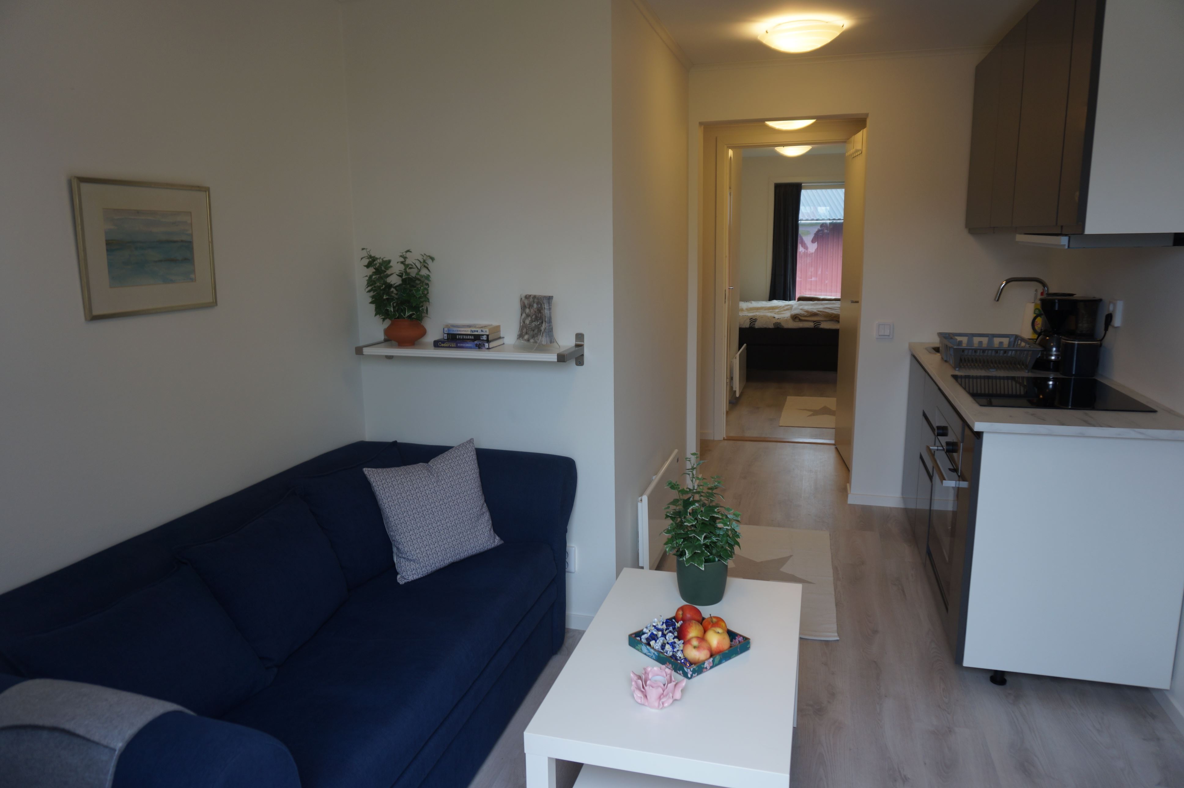Lägenheter med gångavstånd till stranden i bostadsrättsförening Solhyddan, mitt i Köpingsvik. Varje lägenhet har en privat ägare vilket gör att de kan variera i inredning.
