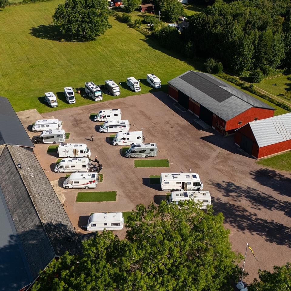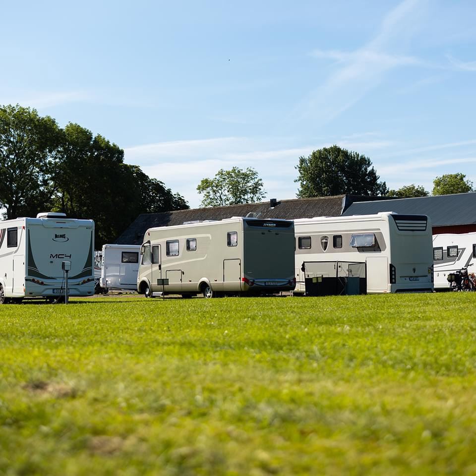 Vi har ett säkerhetsavstånd på 4 meter mellan husbilarna. Detta är ett krav från