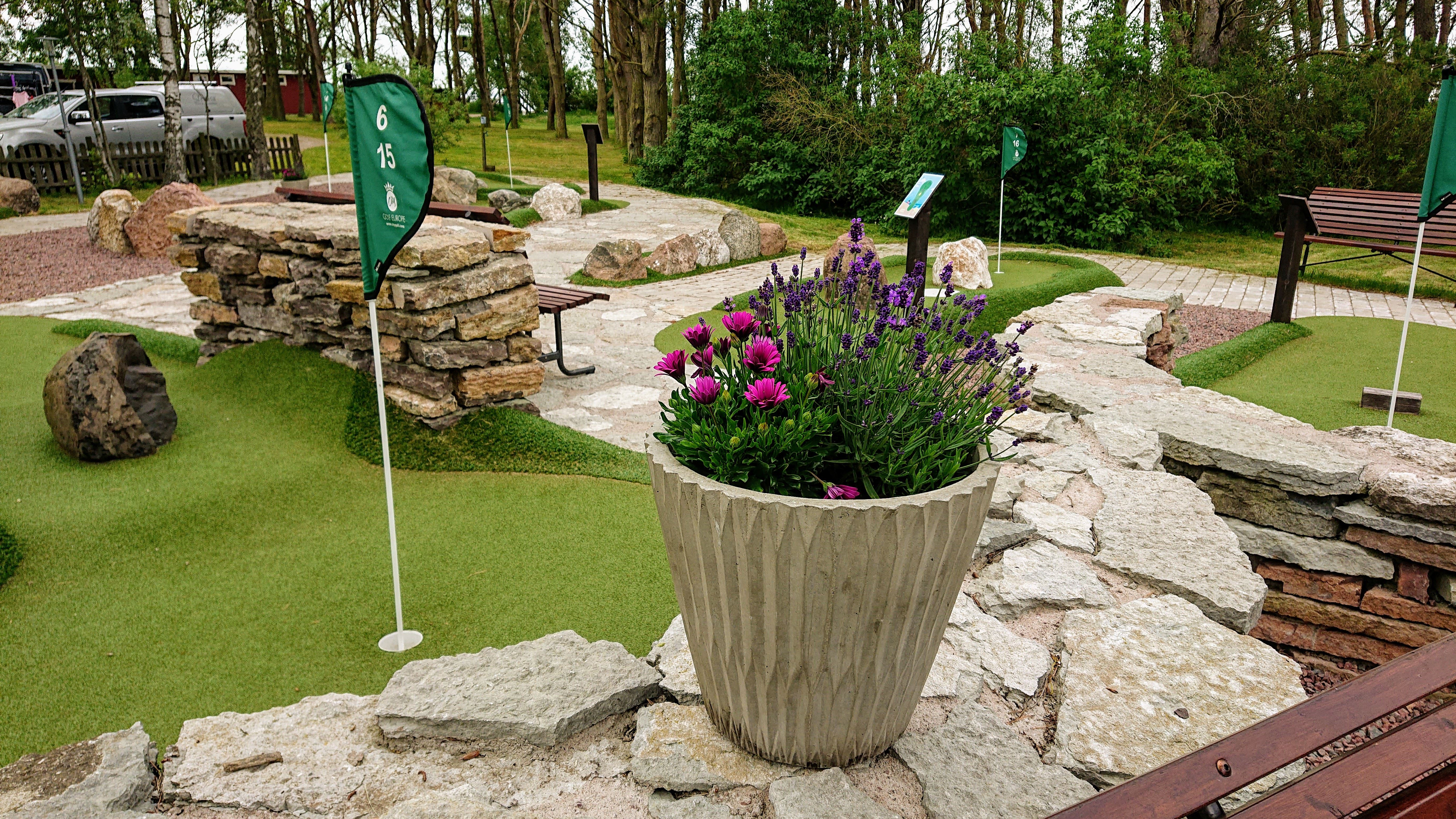 Det finns en mindre lekplats med gungor samt äventyrsgolf för hela familjen.
